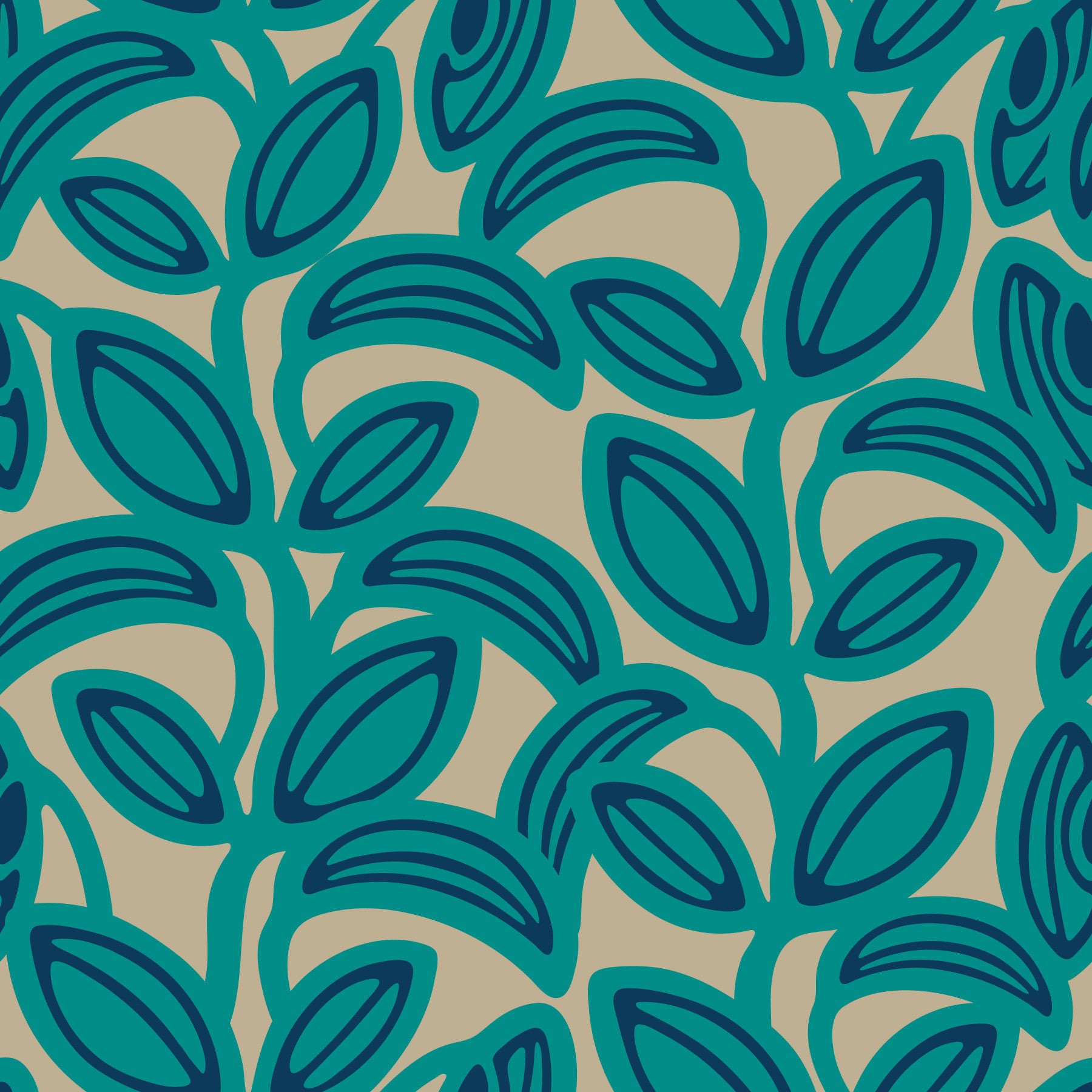 Surround yourself with the Mid Century Modern retro groovy style of this Leaf Laugh Love botanical wallpaper that radiates positive energy. This design features an organic pattern of stylized leaves in a vibrant vintage color palette showcasing turquoise and navy blue on warm beige sand. The groovy free-flowing shapes evoke a sense of Summer carefree joy, reminiscent of the optimistic spirit of the 1970s. Let this wallpaper inspire laughter, love and good vibes in your space with its playful yet sophisticated design and pop of bright fresh color. This pattern design is also available in Other Colourways too! Original wallpaper pattern design by Jackie Tahara of UnBlink Studio.