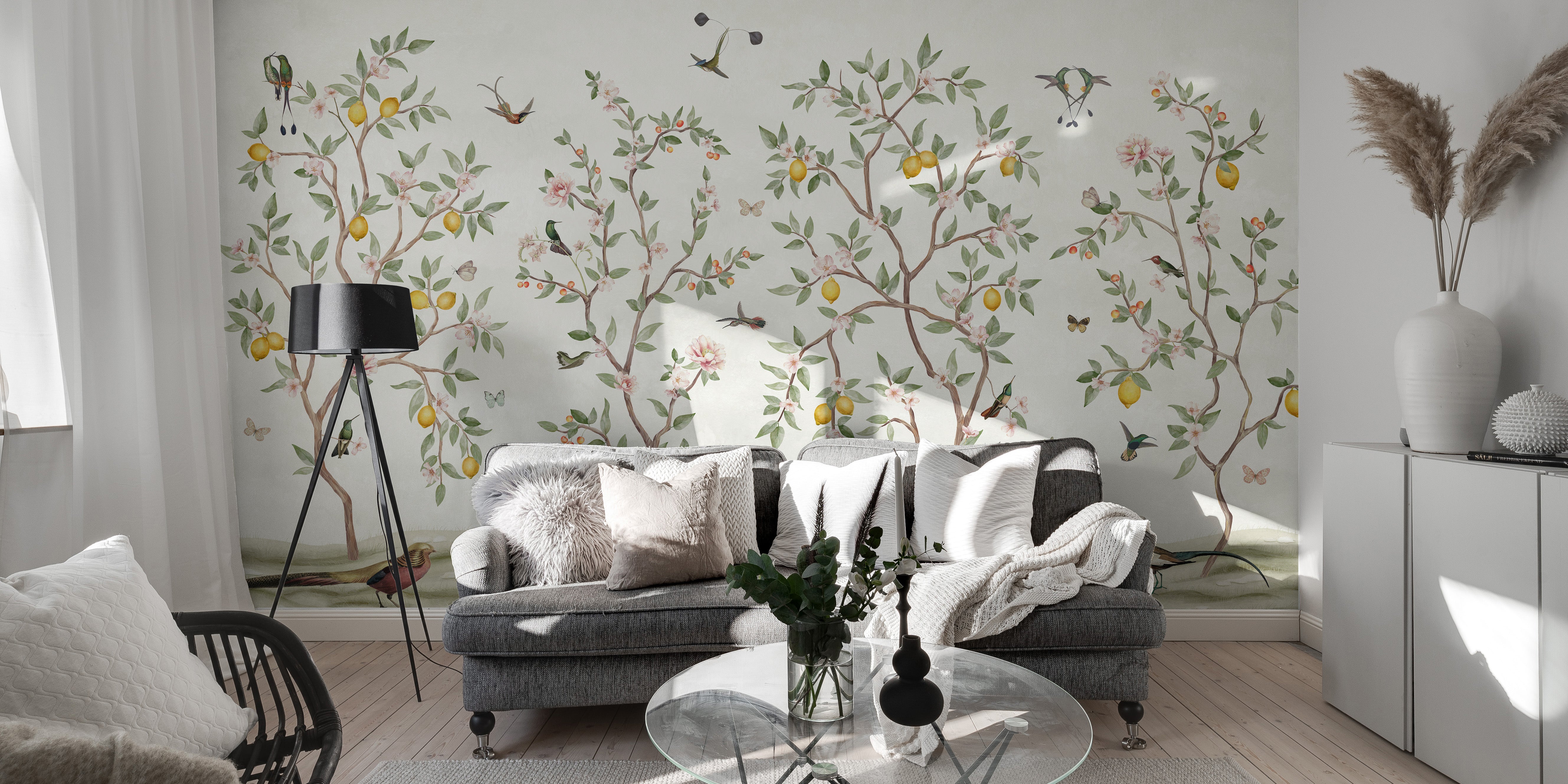 Lemon Tree Chinoiserie Design Wallpaper for Walls