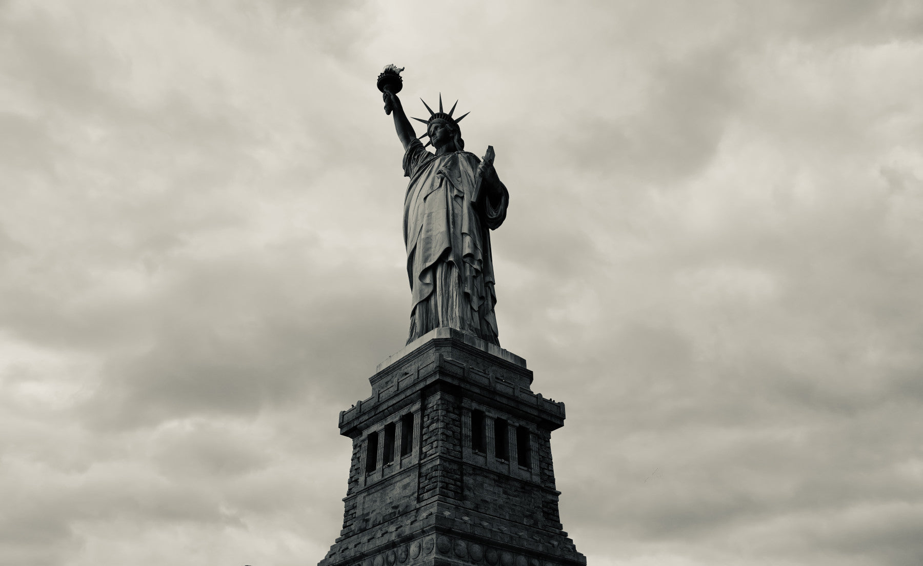 Capture the essence of freedom with this striking monochrome wallpaper for walls. The Statue of Liberty emerges powerfully against a clouded sky, creating a scene filled with contemplation. The stark contrast adds a sophisticated look, ideal for spaces desiring a touch of classic grandeur. This design suits offices, living rooms, or libraries, lending an intellectual vibe. Its simple tones allow it to blend effortlessly, enhancing rather than overpowering your decor.