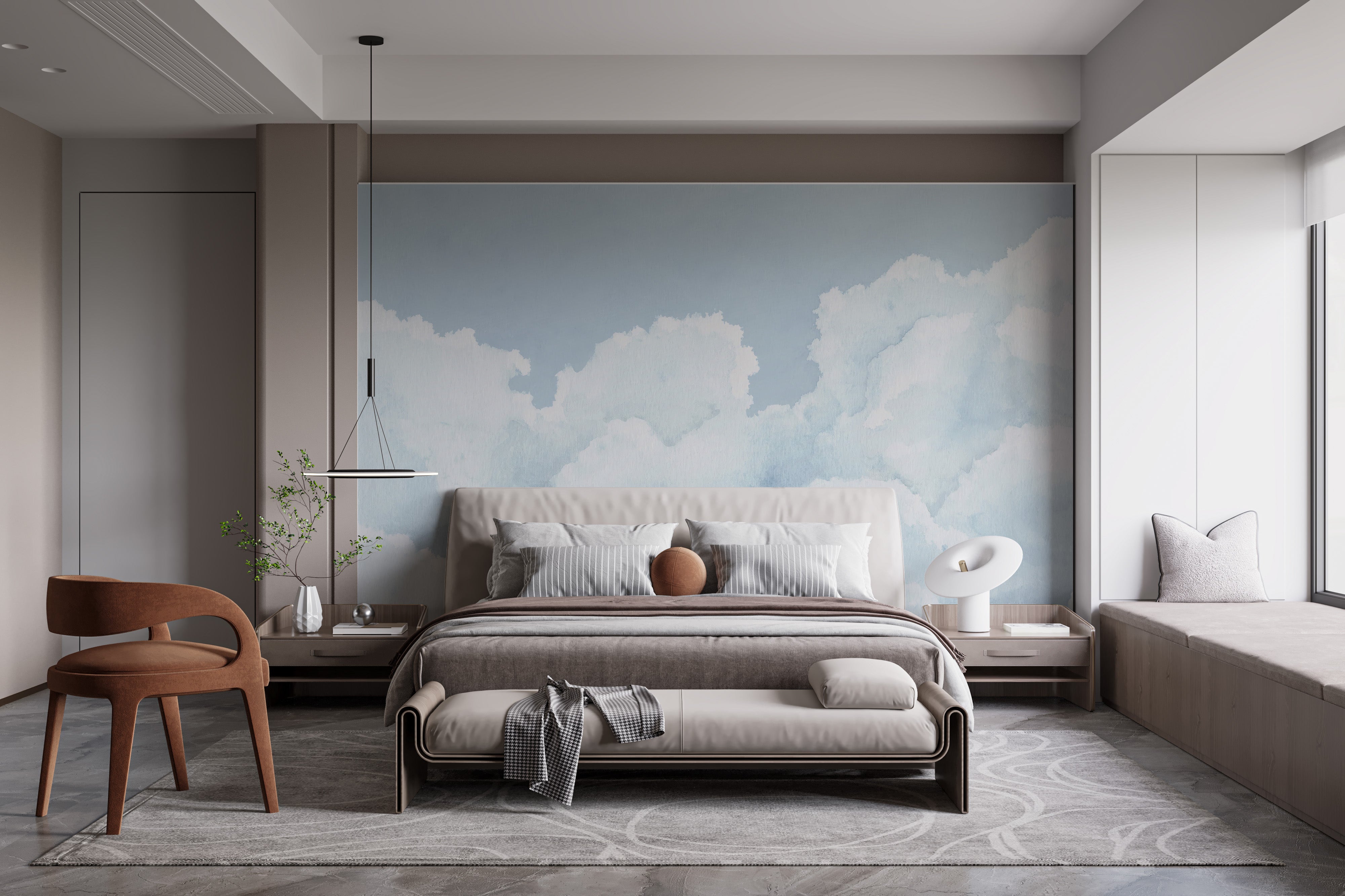 Light Blue Sky Watercolor Wallpaper for Bedroom