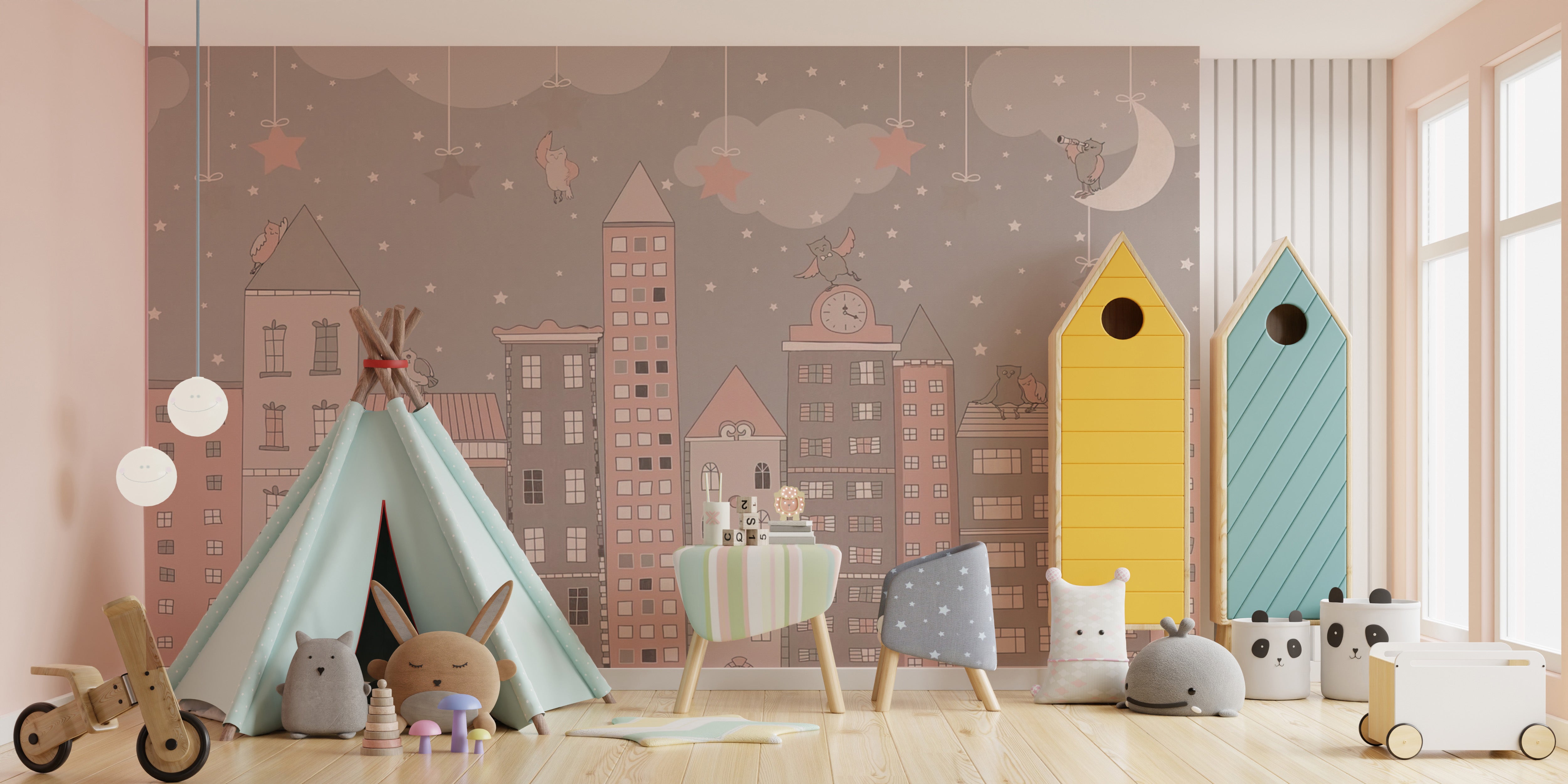 Artistic Cityscape for Kids' Rooms Wallpaper