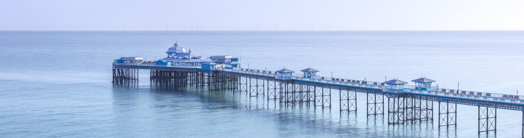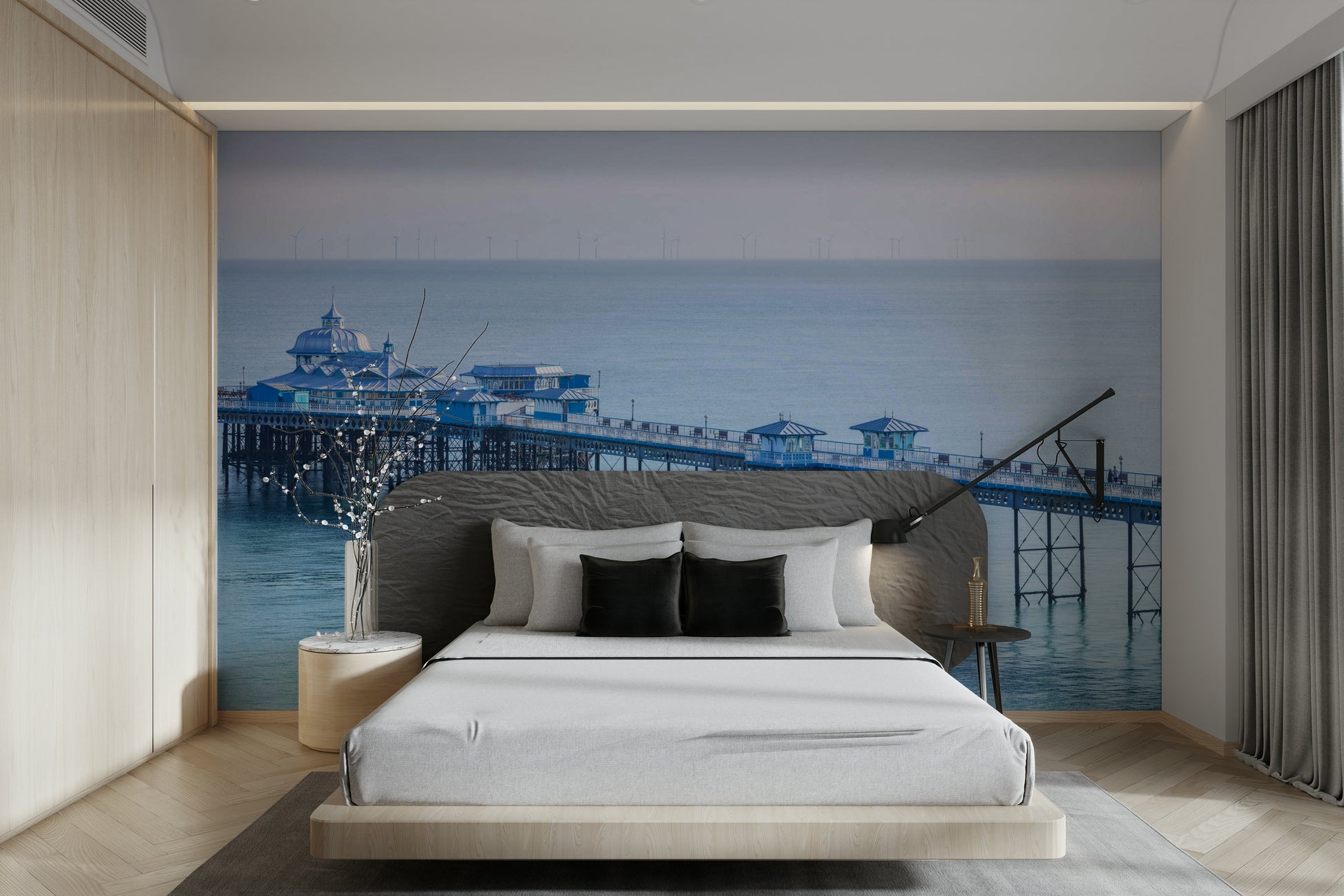 Adorn your home with the tranquil expanse of our Llandudno Pier Wall Mural. This captivating mural wallpaper features the iconic Llandudno Pier stretching gracefully into the calm, blue waters, under a serene sky. The pier's intricate structure and distant horizon evoke a sense of peaceful grandeur and coastal charm. It's an ideal wallpaper for walls to introduce unique character and serene beauty to any room. Its soft, expansive hues and architectural detail offer a calming backdrop, ensuring your home feels both open and beautifully connected to the refreshing seaside. This art piece is an ideal choice for a harmonious and inspiring home.