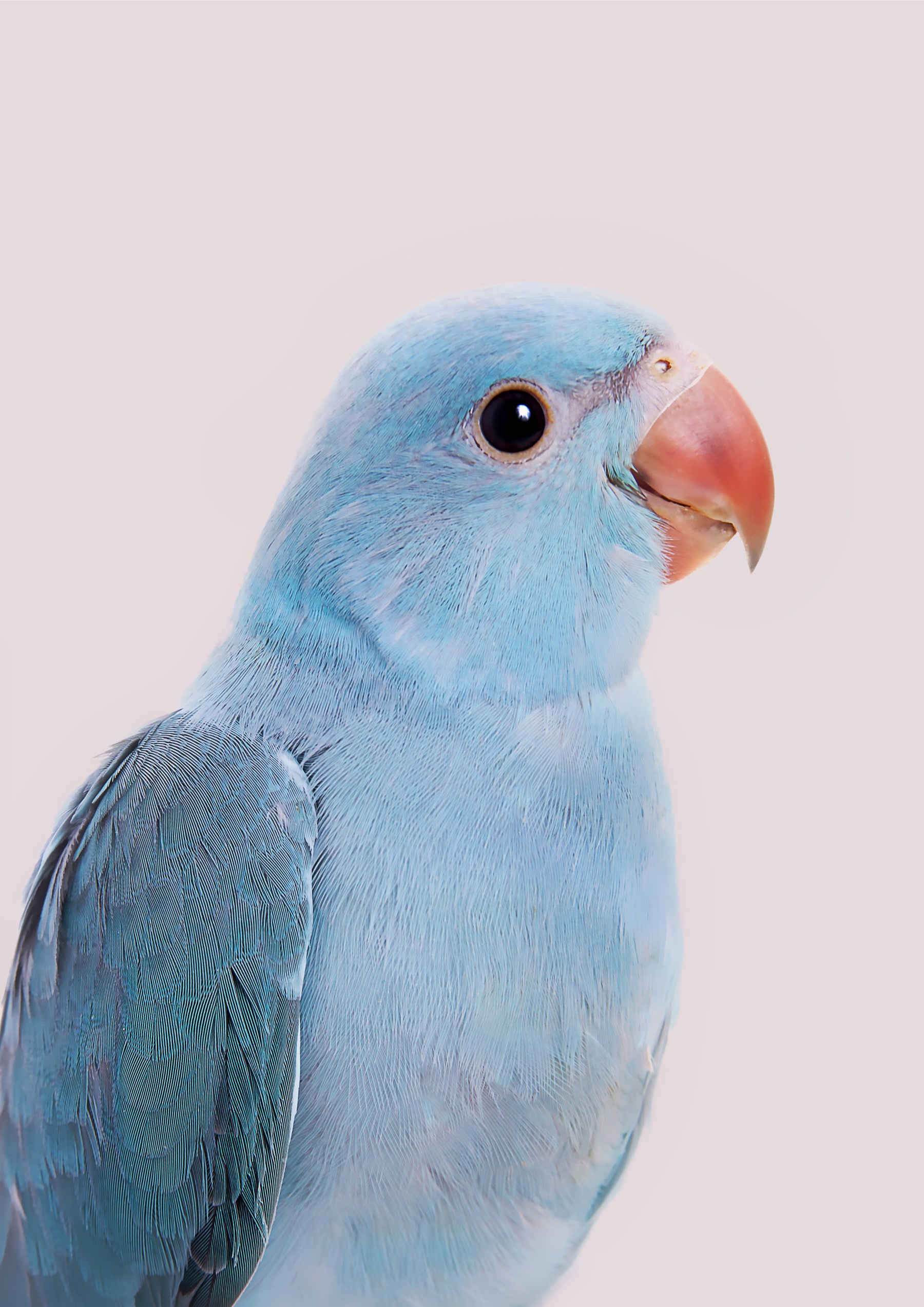 A captivating close-up portrait of a pastel blue lovebird, its delicate feathers rendered in exquisite detail against a soft, neutral background. The bird's gentle gaze and vibrant coral beak create a serene and enchanting mood. This wallpaper embodies tranquility and subtle beauty, perfect for those seeking a peaceful and aesthetically pleasing addition to their digital spaces. The intricate texture of its plumage invites a closer look, offering a calming visual experience. Its soft, airy feel evokes a sense of lightness and hope, making it a delightful choice for a desktop or mobile background.
