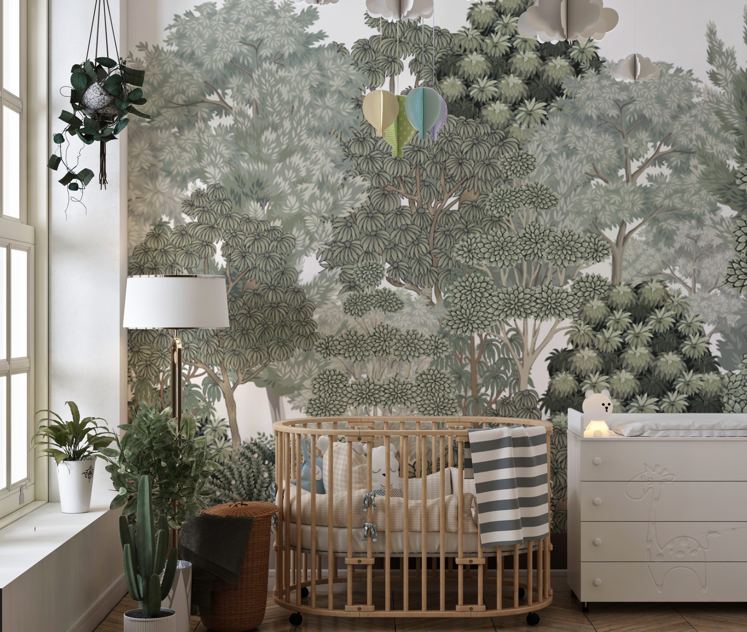 Bring nature indoors with the lush botanical forest wallpaper mural, featuring detailed foliage and towering trees in soothing green tones. This forest wallpaper mural adds a refreshing touch, creating a peaceful setting inspired by dense woodlands. The green botanical wallpaper design blends intricate leaves and branches, offering a natural look. Crafted with premium materials, it ensures durability and a stunning finish. The tropical jungle wallpaper pattern suits living rooms, bedrooms, and offices. Enhance interiors with a tree pattern mural designed for effortless application and long-lasting beauty. Choose this nature-inspired wall decor to enjoy the calming essence of the outdoors.