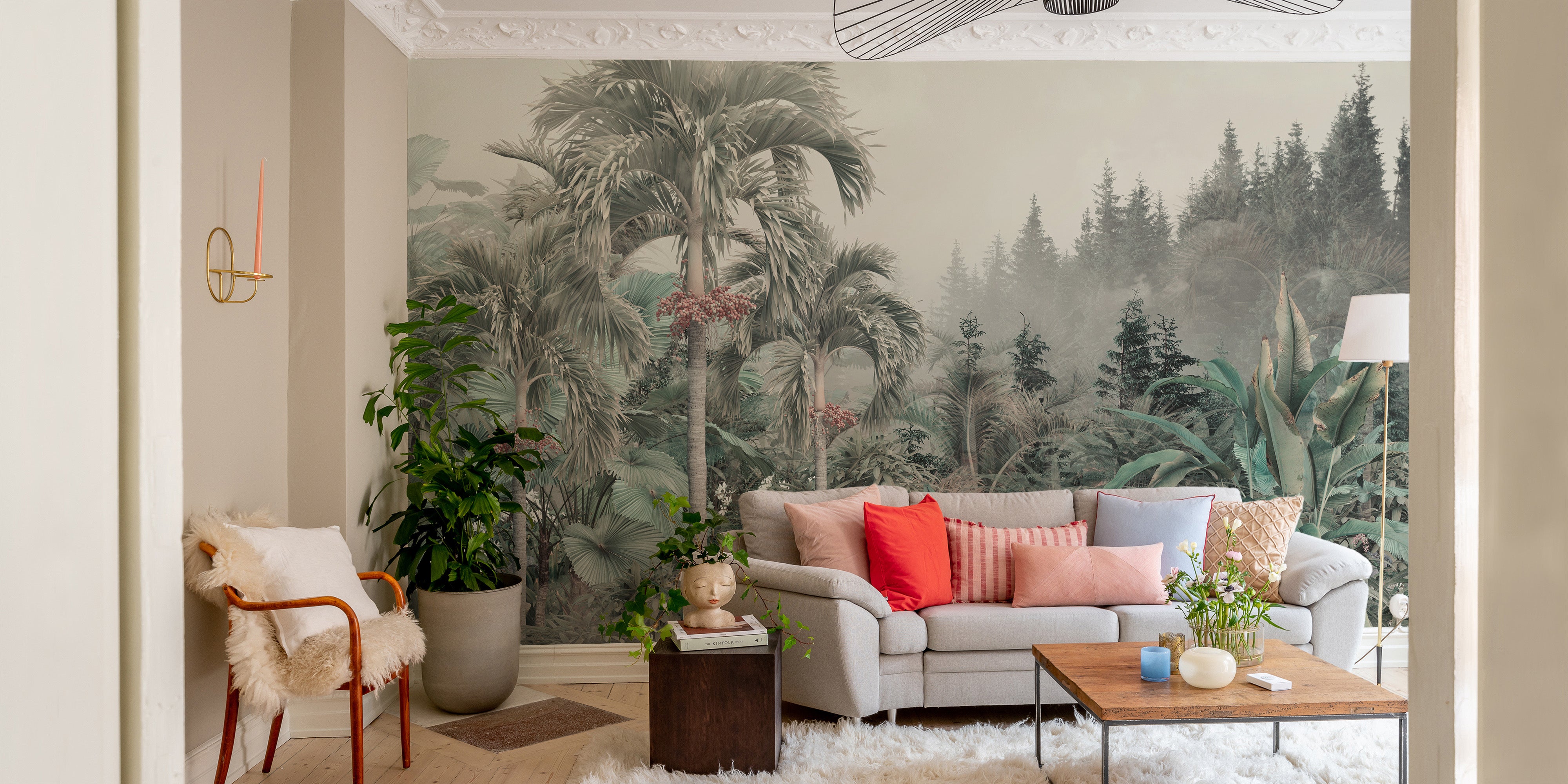Serene green jungle wall mural design