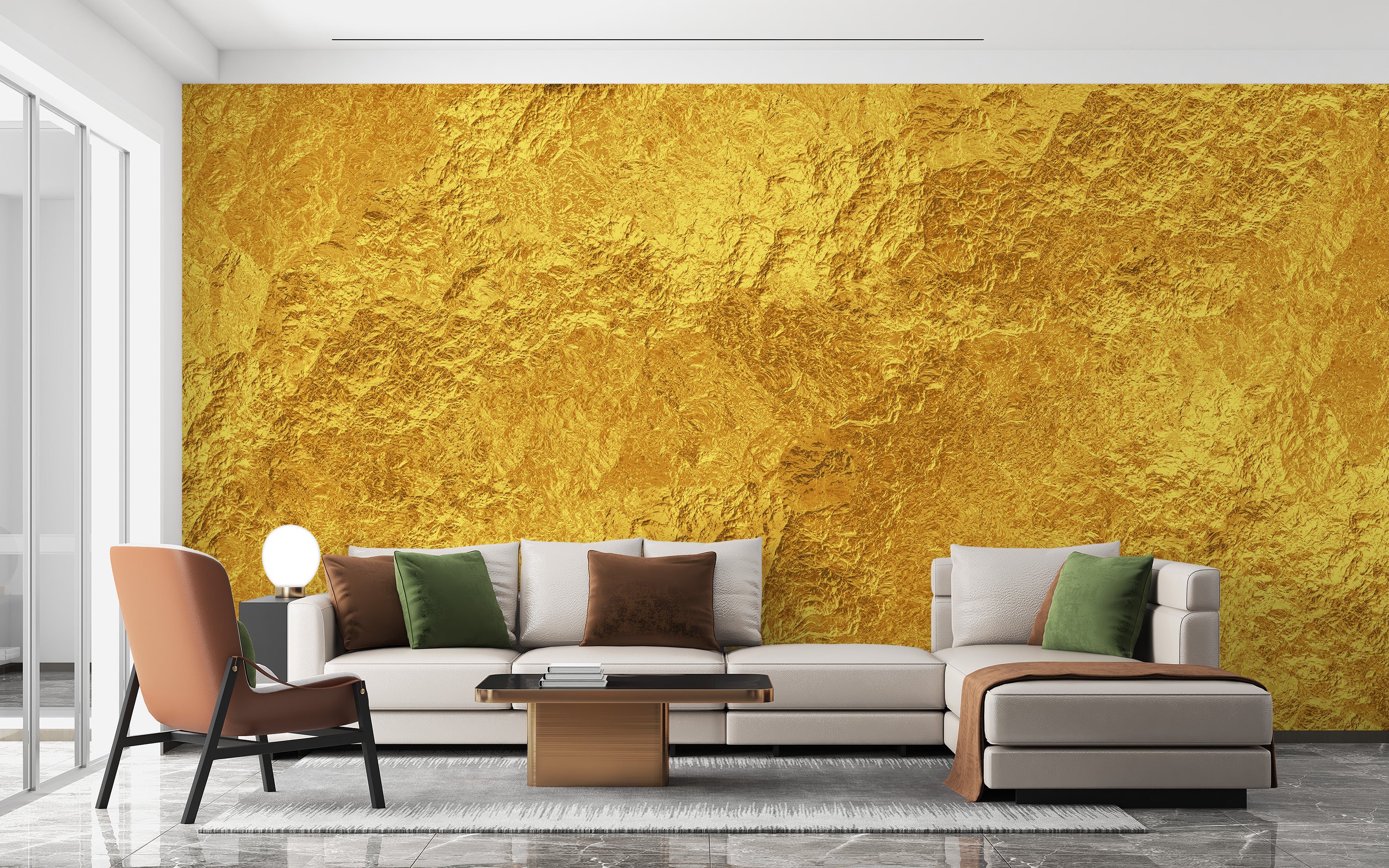 Step into a realm where luxury cascades along the walls with our luxurious golden texture wall mural. As bedroom wallpaper, it is the epitome of lavish living, wrapping your nightly retreat in sheets of gold. Imagine the sun's last kiss goodnight or the first spark of dawn, reflected right in your sanctuary. This mural isn't simply about aesthetics it's a tactile experience, a gentle embrace of splendour every time your gaze drifts across the room. With each morning awakening or evening's repose, feel the subtle grandeur that this golden mural brings to your personal space.