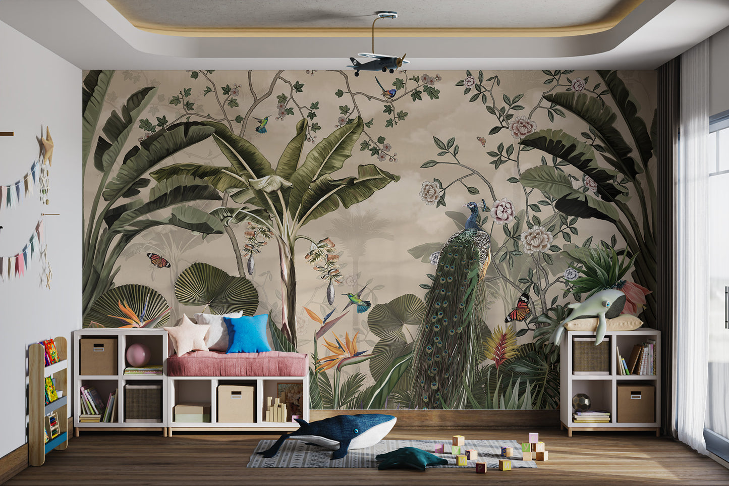 Luxury peacock tropical jungle wallpaper for elegant decor