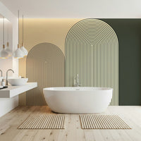 Elegant wall mural with simple arch shapes creating a clean, contemporary aesthetic.