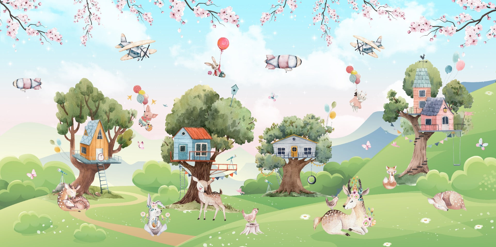 Magical Cartoon Jungle Kids Wallpaper Mural