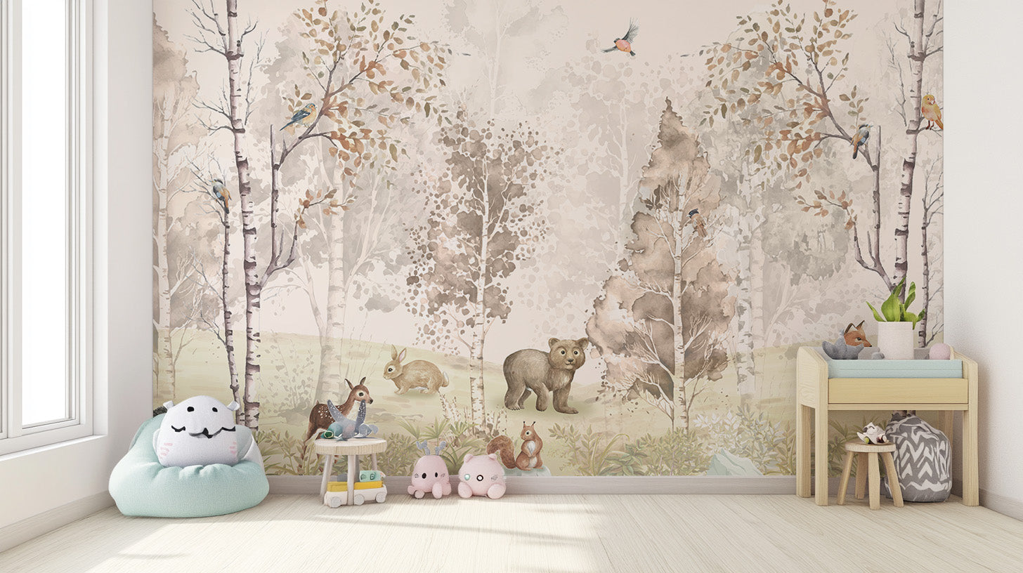 Our magical Menagerie woodland nursery wallpaper offers a playful yet serene backdrop for any child's room. It features gentle woodland creatures and soft, pastel landscapes that invite a sense of calm and wonder. This nursery wallpaper is perfect for sparking the imagination and complements a wide range of nursery themes. By adding this captivating scene to your home, you'll watch your little one's eyes light up with joy each day. It is suitable for all ages and creates a lasting impression that grows with your child. The durable material ensures it holds up against the joyous play of children, making it a smart, long-lasting investment for any family.