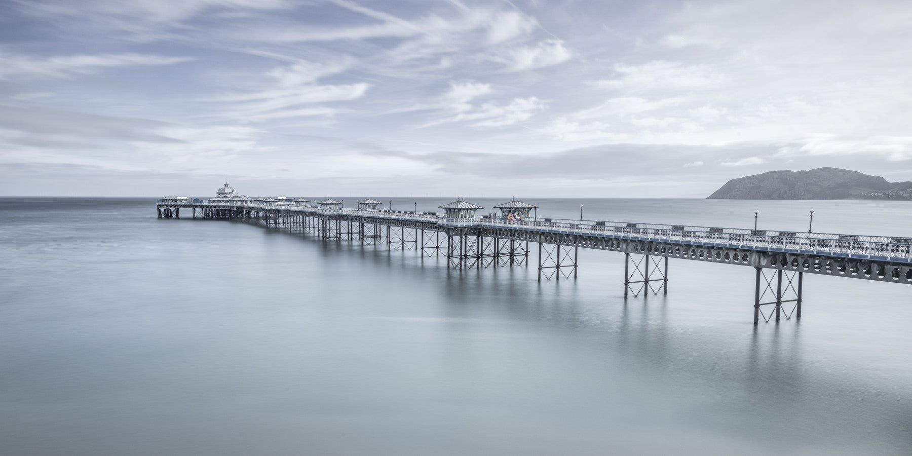 Our Majestic Llandudno Pier Wall Mural gives your home a feeling of serene beauty and classic elegance. This wall mural features a panoramic view of the historic Llandudno Pier extending gracefully into the calm, misty sea. The soft, muted colors and the serene atmosphere create a tranquil and inviting backdrop, perfect for a living room, bedroom, or study. This high-quality wallpaper for walls is durable and easy to install, making it a simple way to get a classic, high-end look with a touch of peaceful charm.