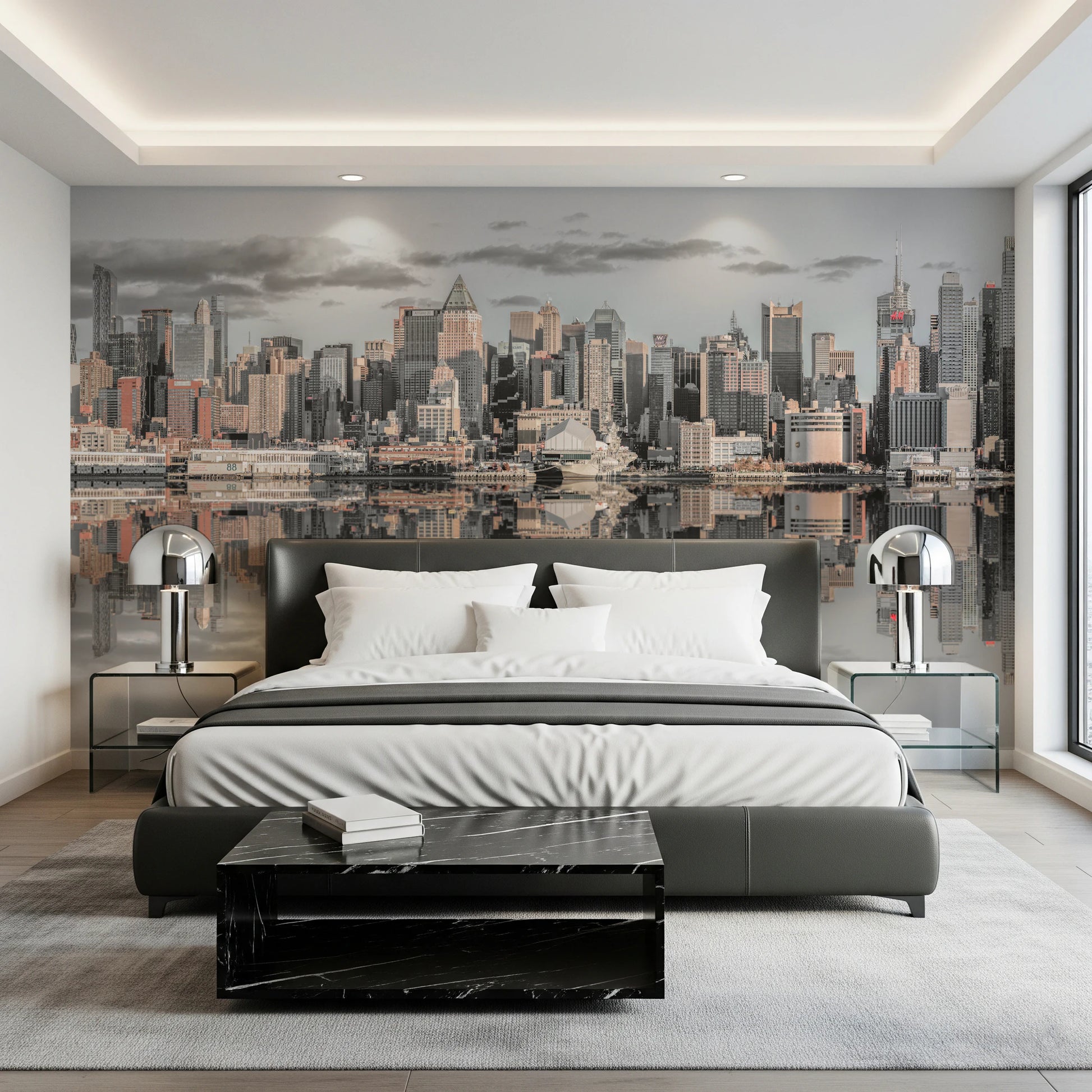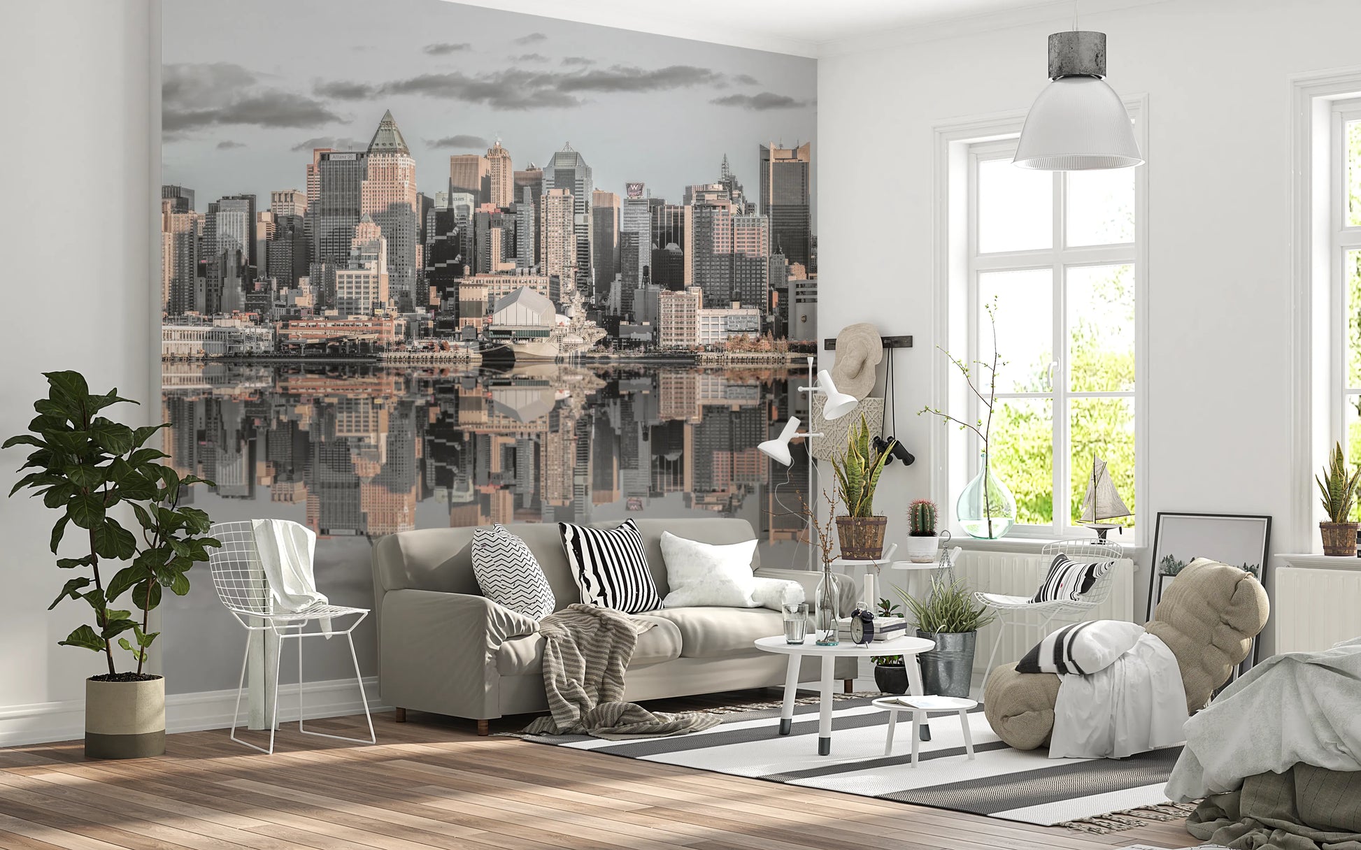 Capture the awe-inspiring energy of New York City with this stunning 'Manhattan Skyline Panorama'. This piece brings the iconic cityscape directly into your space, showcasing the architectural grandeur of Manhattan with a captivating reflection. The panoramic view, rendered in sophisticated tones, offers a unique perspective on this world-renowned skyline, perfect for creating a dramatic and modern atmosphere. Each building is meticulously detailed, creating a depth that draws the eye and transforms any room into a gallery. Ideal for the urban enthusiast, this wall décor embodies the spirit of ambition and dreams, making a bold statement in any home or office setting.