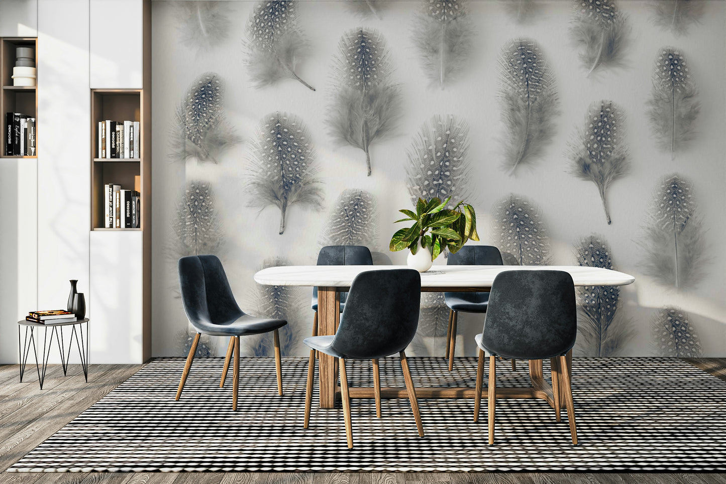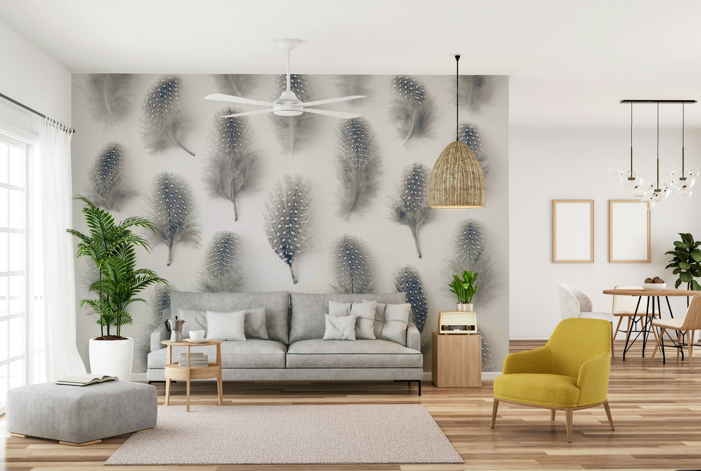 Adorn your home with the delicate rhythm of our Marching Feathers Wall Mural. This captivating mural wallpaper features an artistic arrangement of various feathers, often in muted grays, whites, and subtle earth tones, creating a sense of orderly movement or a gentle, repeating pattern across your wall. The design highlights the unique textures and subtle beauty of each plume, evoking a feeling of peaceful progression and natural artistry. It's an ideal wallpaper for walls to introduce unique character and a profound feeling of serene calm and understated elegance to any room. Its subtle details and inviting aesthetic offer a pleasing backdrop, ensuring your home feels both soothing and beautifully connected to the quiet grace of nature. This wall mural is a wonderful choice for a harmonious and inspiring home.