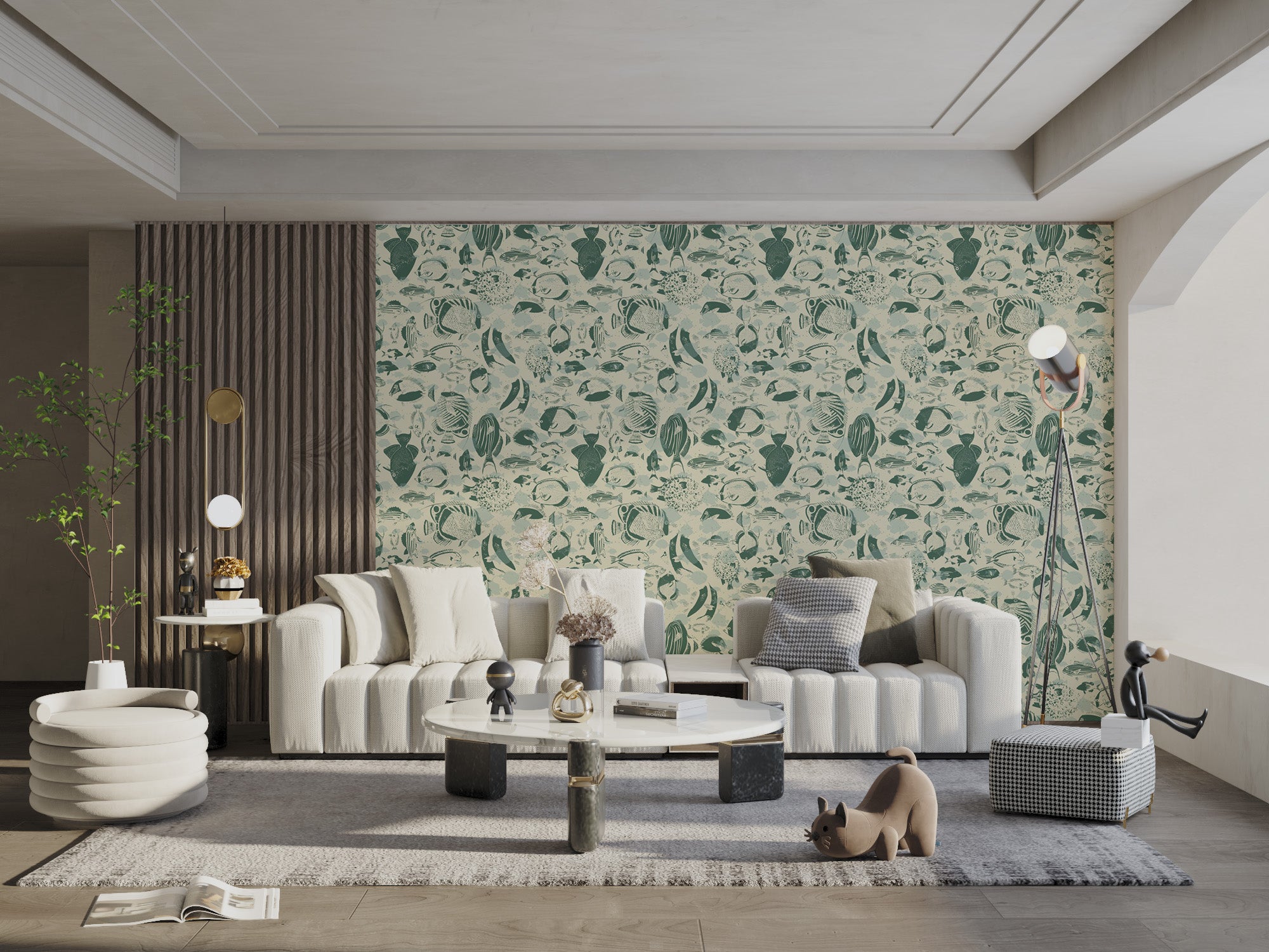 Elegant Marine Mosaic Pattern Wallpaper Mural