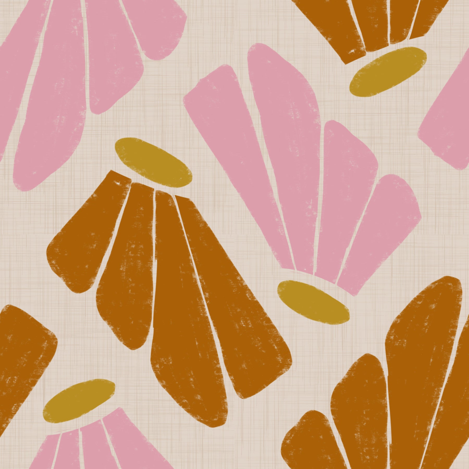 Embrace the serene beauty of this Matisse-inspired wallpaper. Soft blush pinks and warm burnt oranges dance across a delicate beige linen-textured backdrop, creating a calming and sophisticated atmosphere. The stylized floral motifs, rendered in a bold yet understated manner, evoke a sense of effortless elegance. Their simplified forms and textured brushstrokes add a touch of artistic whimsy, making this wallpaper perfect for adding a touch of modern art to any space. The muted color palette promotes tranquility and complements a variety of interior styles, from minimalist chic to cozy bohemian.