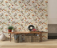 Infuse your home with the tranquil beauty of a watercolour meadow by Uta Naumann. This stunning wallpaper for walls features graceful butterflies amidst a tapestry of delicate wildflowers, all rendered in gentle watercolour hues. The design's seamless pattern creates a serene and inviting atmosphere. Earthy tones of beige, brown, and blush blend beautifully with the soft blues and yellows, making this wallpaper a versatile choice for a living room, bedroom, or even a hallway. It elevates interior design and brings the calming feeling of nature indoors.