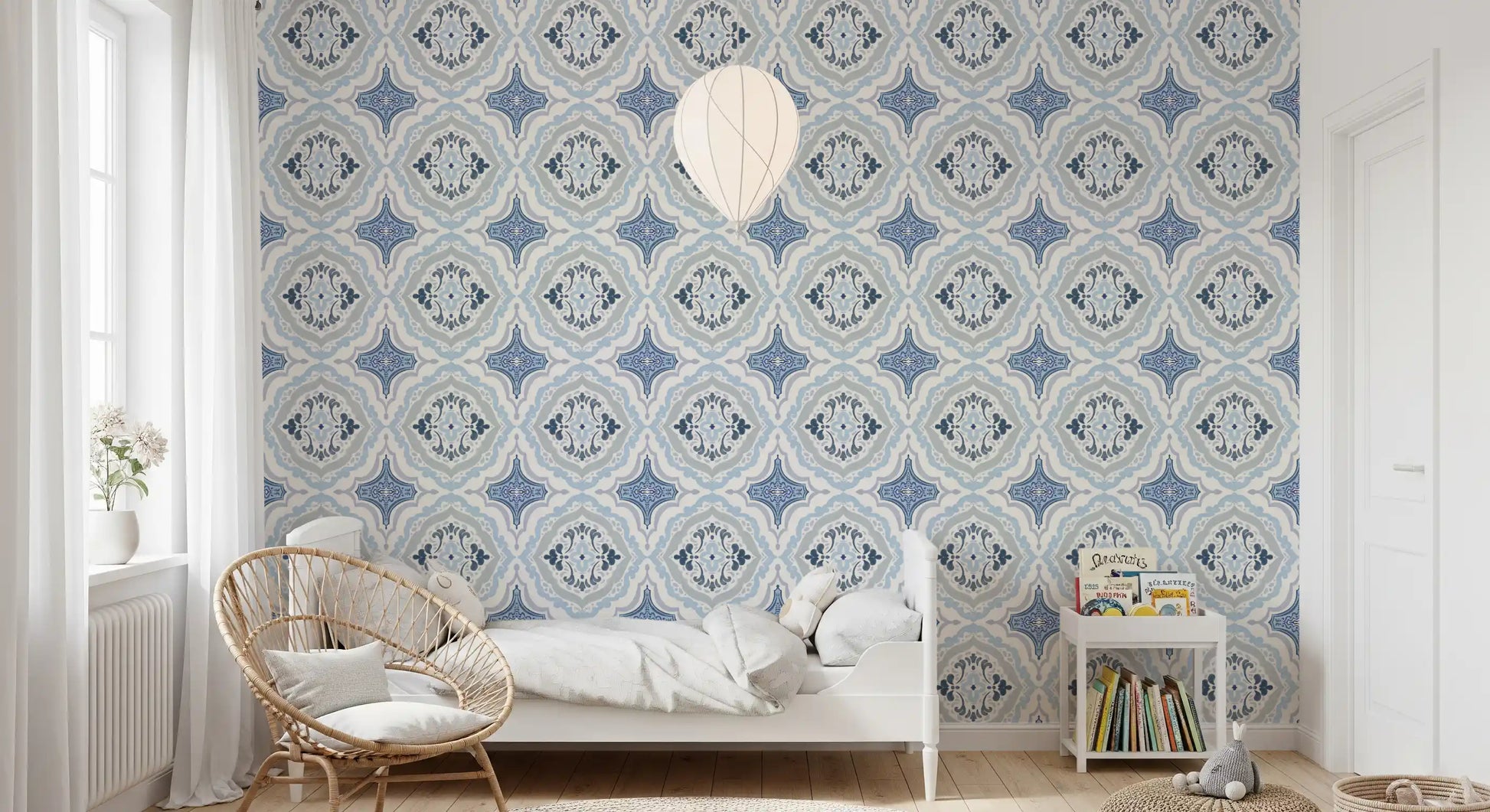 Transform your space with the enchanting allure of the Mediterranean. Our 'Mediterranean Indigo Fleur Tile' pattern brings the timeless beauty of classic tile work directly to your walls. Intricate floral motifs, rendered in a soothing palette of indigo blues and soft greys, create a calming and sophisticated ambiance. Echoing the sun-drenched coasts and historic artistry of the Mediterranean, this design adds a touch of elegance and refined detail to any room. It's a simple way to create an inviting and stylish atmosphere, infusing your home with the charm of artisanal craftsmanship.