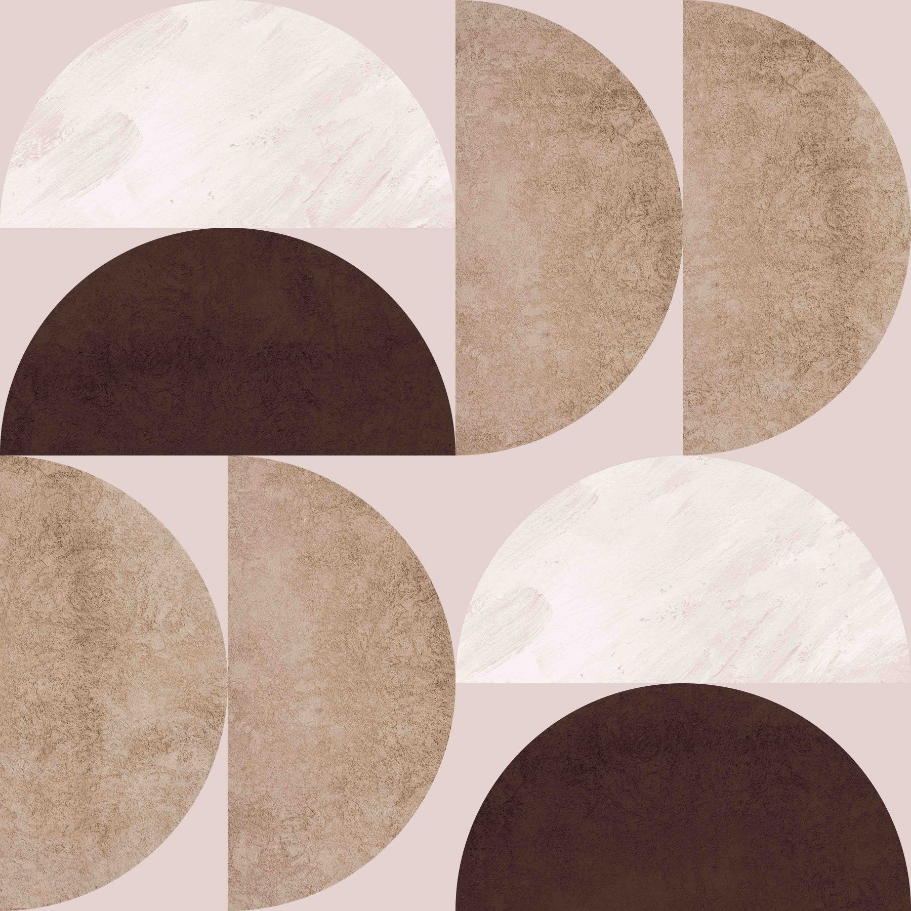 "Mescolanza 17" presents a harmonious blend of geometric precision and textural richness. Semicircles of varying shades – from creamy beige to deep chocolate brown – are meticulously arranged against a soft, blush background. The interplay of smooth, painted textures and subtly grained surfaces creates a visually tactile experience. This abstract composition evokes a sense of refined simplicity and quiet sophistication, making it a perfect backdrop for a modern and calming digital space. The contrasting yet complementary colors add depth and visual interest, ensuring a timeless appeal.