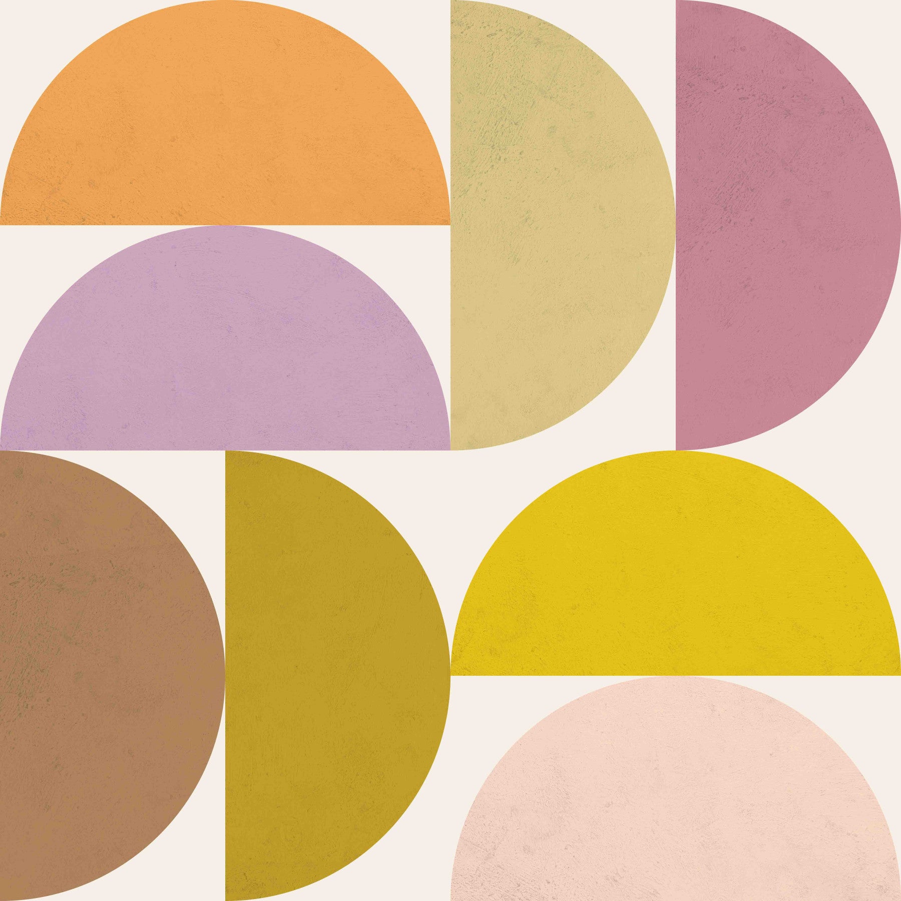 Dive into the captivating world of 'Mescolanza 20,' a wallpaper that celebrates the beautiful chaos of blended elements. This design showcases a playful arrangement of semi-circles in a spectrum of muted, earthy tones. Ochre, mauve, and golden yellows collide with dusty rose and hints of lavender, creating a visually stimulating yet calming composition. The textured surfaces of each semi-circle add a tactile depth, inviting the viewer to explore the subtle nuances within the pattern. 'Mescolanza 20' evokes a sense of warmth and understated sophistication, ideal for adding a touch of artistic flair to any digital space.
