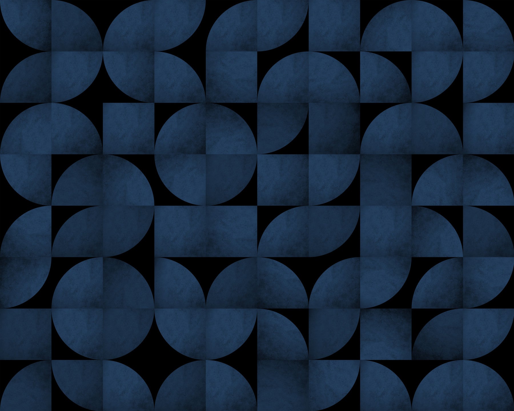 'Mid-Century Blue Stone' - This wallpaper features a captivating geometric pattern of circles and squares, rendered in a deep, textured blue reminiscent of honed stone. The interplay of positive and negative space, accentuated by the bold black background, creates a visually striking statement piece. The design draws inspiration from the era's fascination with clean lines and abstract forms, adding a sophisticated and retro-chic touch to any room. The subtle texture adds depth and visual interest, mimicking the natural variations found in quarried stone. Embrace a harmonious blend of vintage charm and contemporary style with this unique and eye-catching design, perfect for creating a stylish focal point in your living room, bedroom, or office.