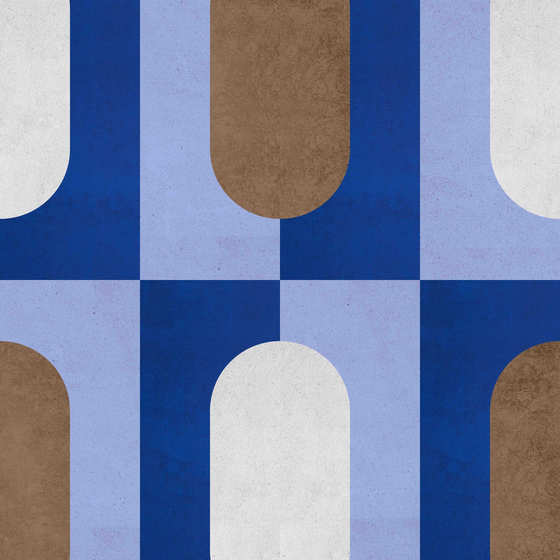 Dive into the captivating allure of Mid Century Collection part 3, a wallpaper design that perfectly embodies the aesthetic principles of the era. This pattern offers a sophisticated blend of geometric shapes and muted, earth-toned colours, creating a visual experience that's both calming and intriguing. Striking blue hues are artfully juxtaposed with soft, light blue and creamy white segments, while textured brown half-circles add warmth and depth. The interplay of squares and arches evokes a sense of architectural harmony, reminiscent of iconic mid-century modern structures. Ideal for adding a touch of retro elegance to any space, this wallpaper offers a subtle yet impactful statement. It invites you to embrace the timeless appeal of mid-century design, transforming your walls into a gallery of understated sophistication. Let "Mid Century Collection part 3" redefine your interior with its unique blend of form, color, and texture.