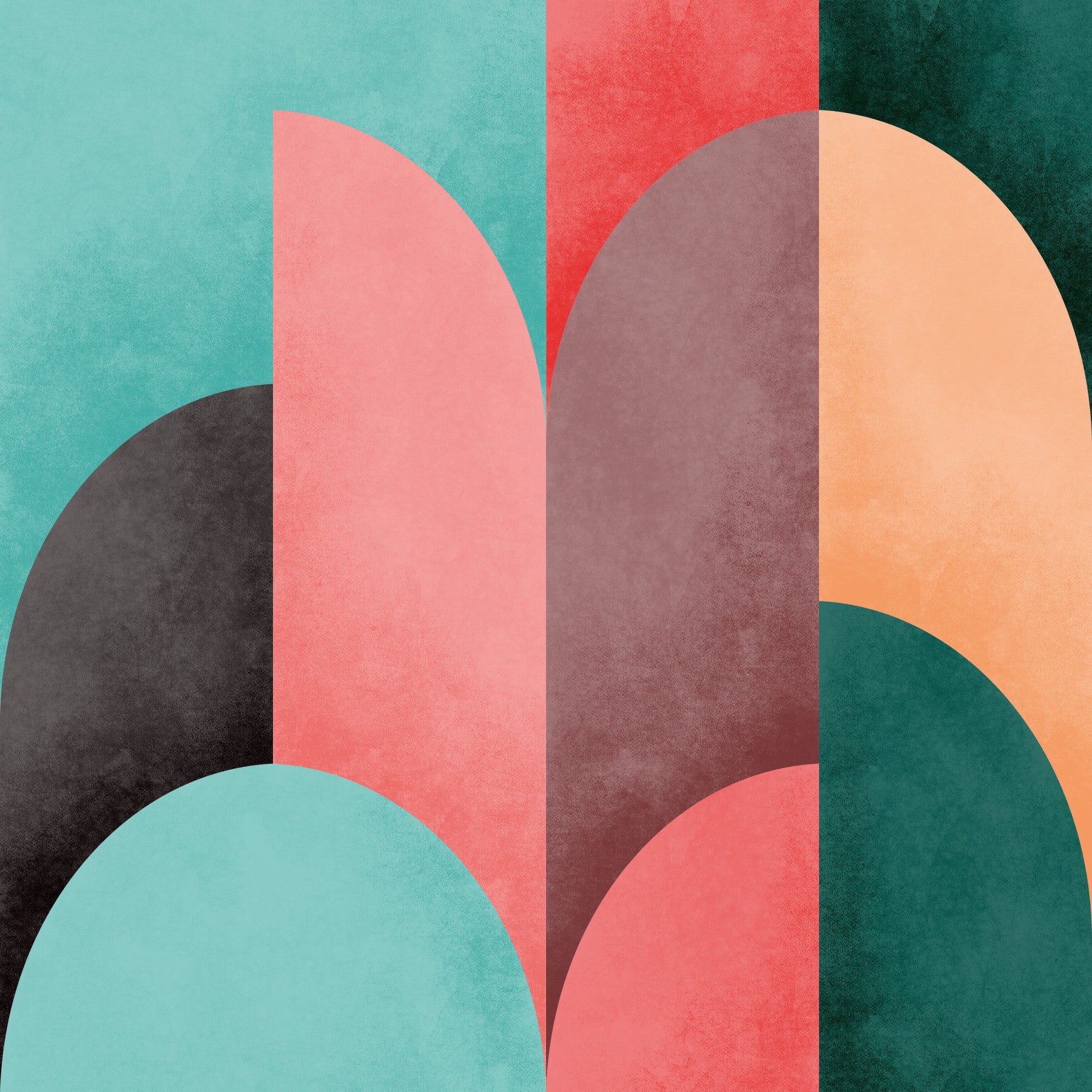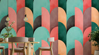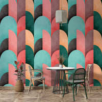 Evoke a sense of retro-chic tranquility with the "Mid Mod Geometry Sunrise" wallpaper. This design blends the clean lines and geometric shapes characteristic of mid-century modern aesthetics with the warm, optimistic hues of a rising sun. Semi-circular segments in muted coral, peach, teal, and deep earth tones intersect and overlap, creating a visually captivating yet calming composition. The subtle texture overlay adds depth and a tactile feel, enhancing the wallpaper's overall sophistication. Perfect for adding a touch of vintage elegance and a splash of welcoming colour to any space, "Mid Mod Geometry Sunrise" offers a refreshing take on classic design, promising to brighten your walls and elevate your mood with its harmonious blend of form and color.