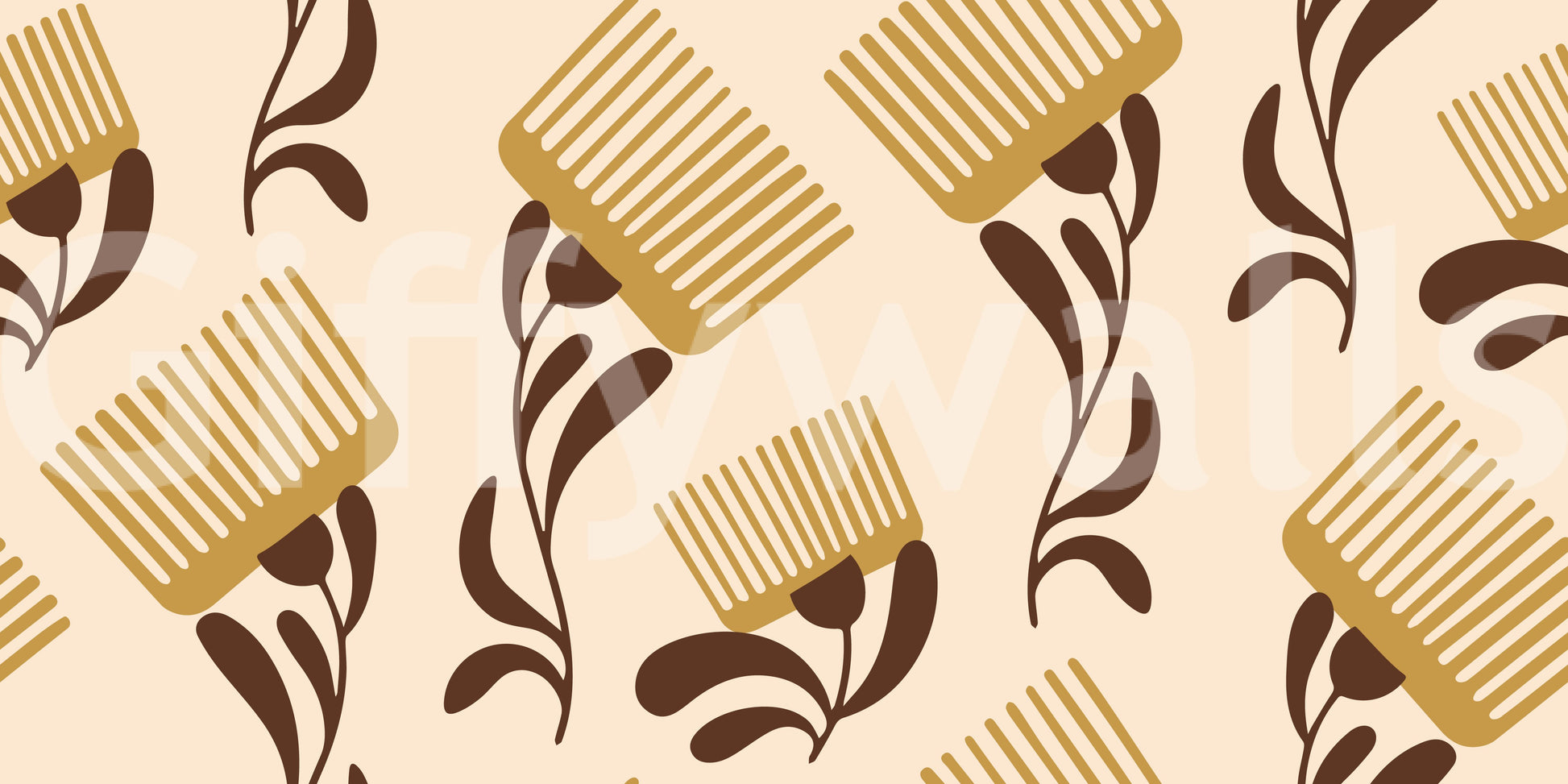 Infuse your space with the charm of a bygone era with "Mid Mod Wildflower Comb - Beige Chocolate". This captivating wall covering reimagines mid-century modern aesthetics through a whimsical lens. Imagine playful wildflowers blooming, but instead of petals, stylized combs in warm beige hues emerge. The stems, rendered in rich chocolate browns, gracefully intertwine, creating a visually striking and harmonious pattern. The colour palette evokes a sense of cosy nostalgia, perfect for creating an inviting atmosphere. This design offers a unique blend of organic forms and geometric sensibilities, making it an ideal choice for adding a touch of retro-chic sophistication to any room. Elevate your interior with this unique conversation starter.