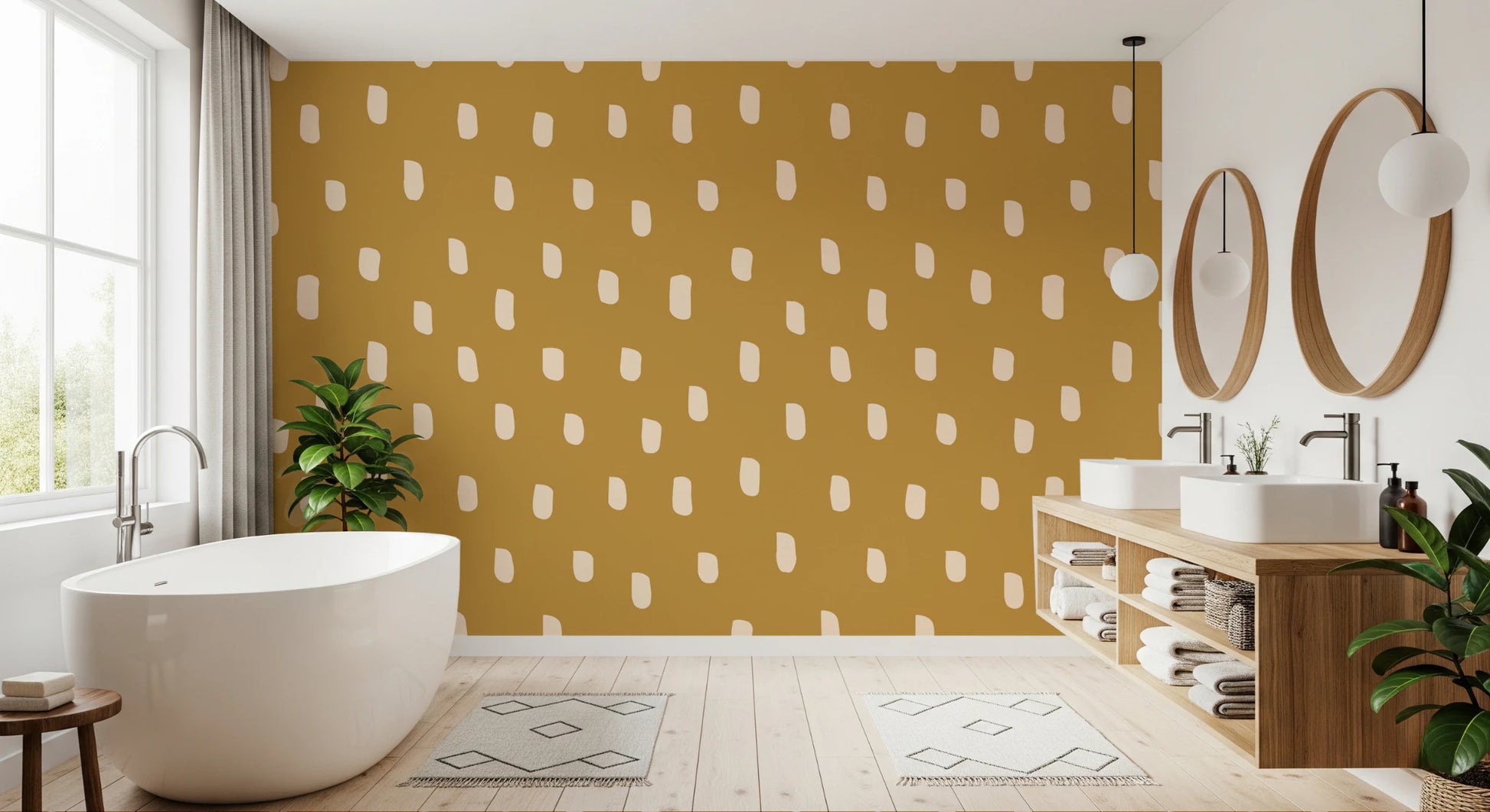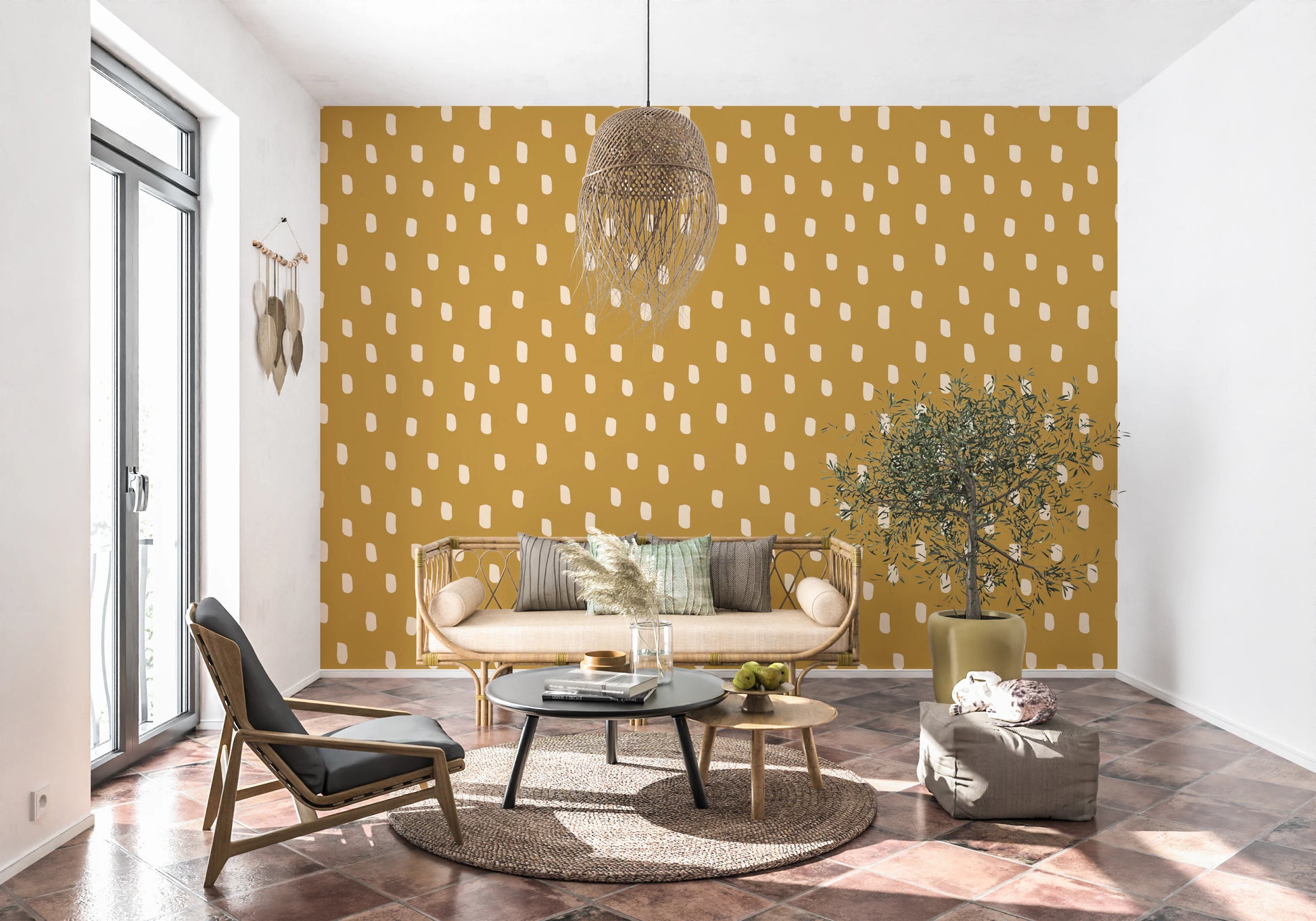 Mid Mod Wildflower Dots - Ocher Beige Wallpaper⁠