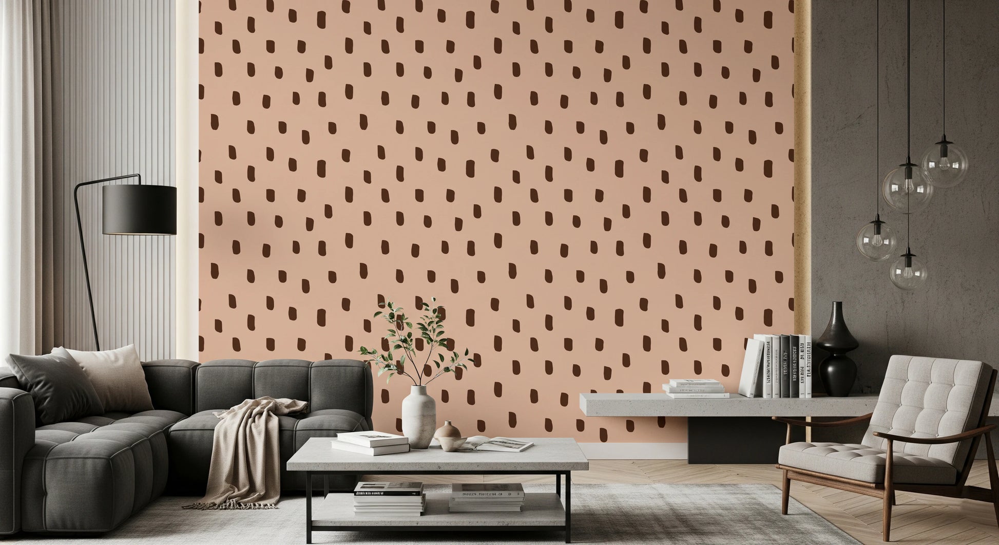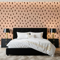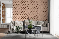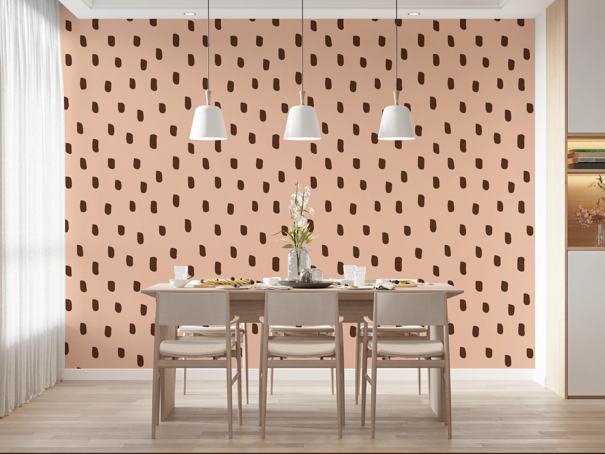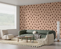 Evoke a sense of retro charm with "Mid Mod Wildflower Dots - Pink Brown," a delightful wall covering that brings a touch of whimsy and warmth to any space. This pattern features playfully scattered, abstracted wildflower shapes in a rich, earthy brown against a soft pink backdrop. The design hints at the organic forms of nature while maintaining a distinctly mid-century modern aesthetic. The balance of the muted pink and bold brown creates a comforting and inviting atmosphere, perfect for adding a subtle yet stylish statement to living rooms, bedrooms, or nurseries. Its simple yet sophisticated design complements a wide range of décor styles, from minimalist to eclectic, making it a versatile choice for creating a cosy and stylish home environment. Bring the spirit of a wildflower meadow indoors with this charming and timeless design.