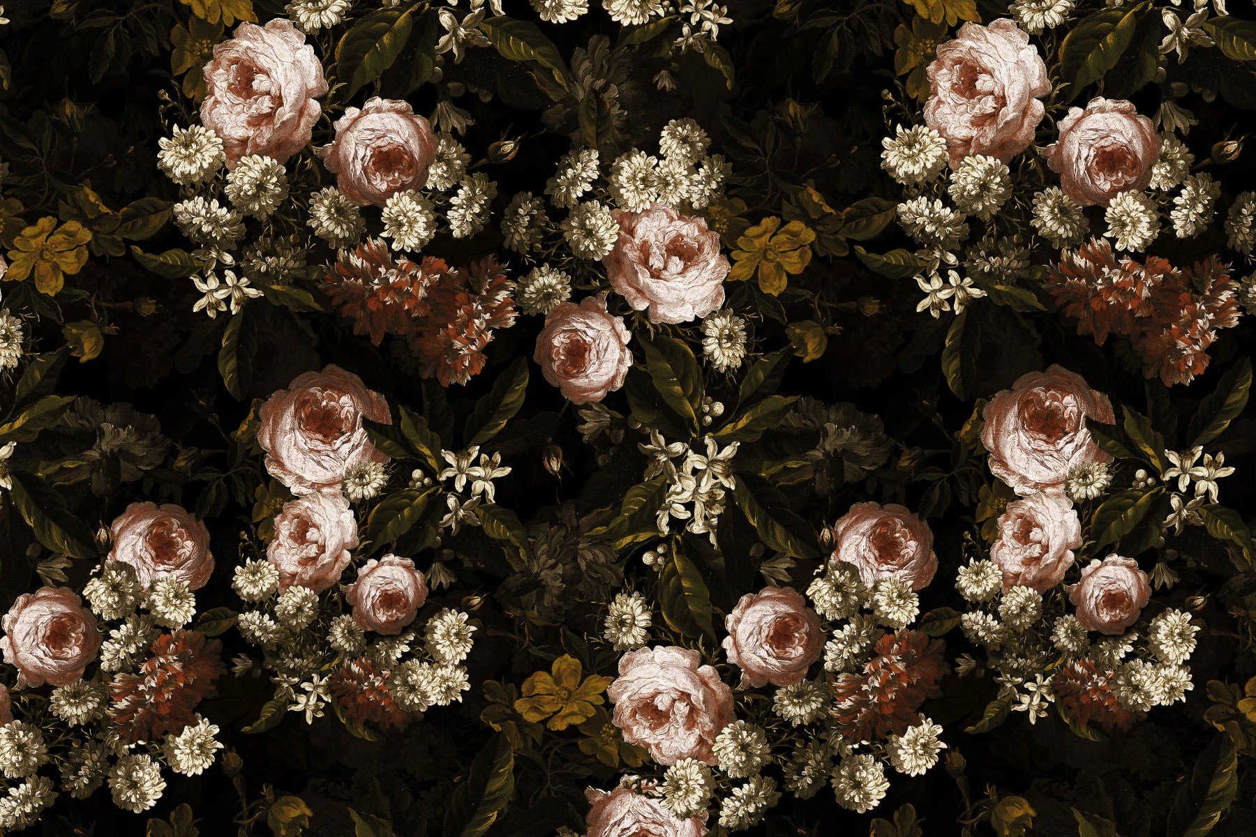 A dark floral decor with baroque blooms.