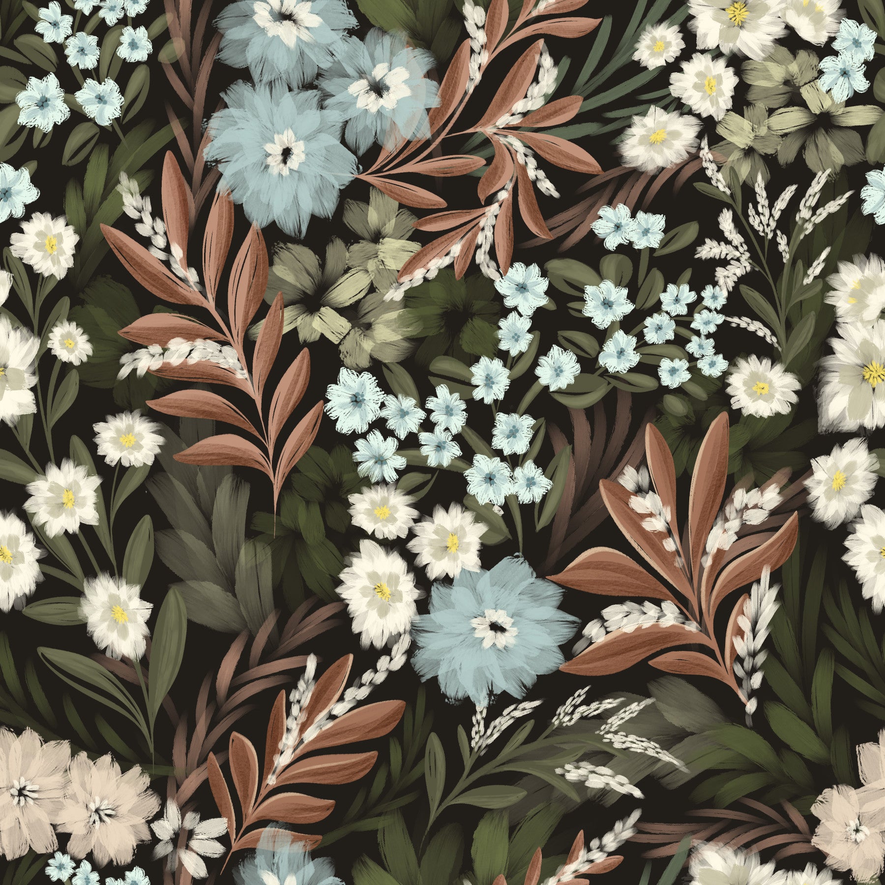 Midnight Forest Bloom wallpaper with dark floral motifs