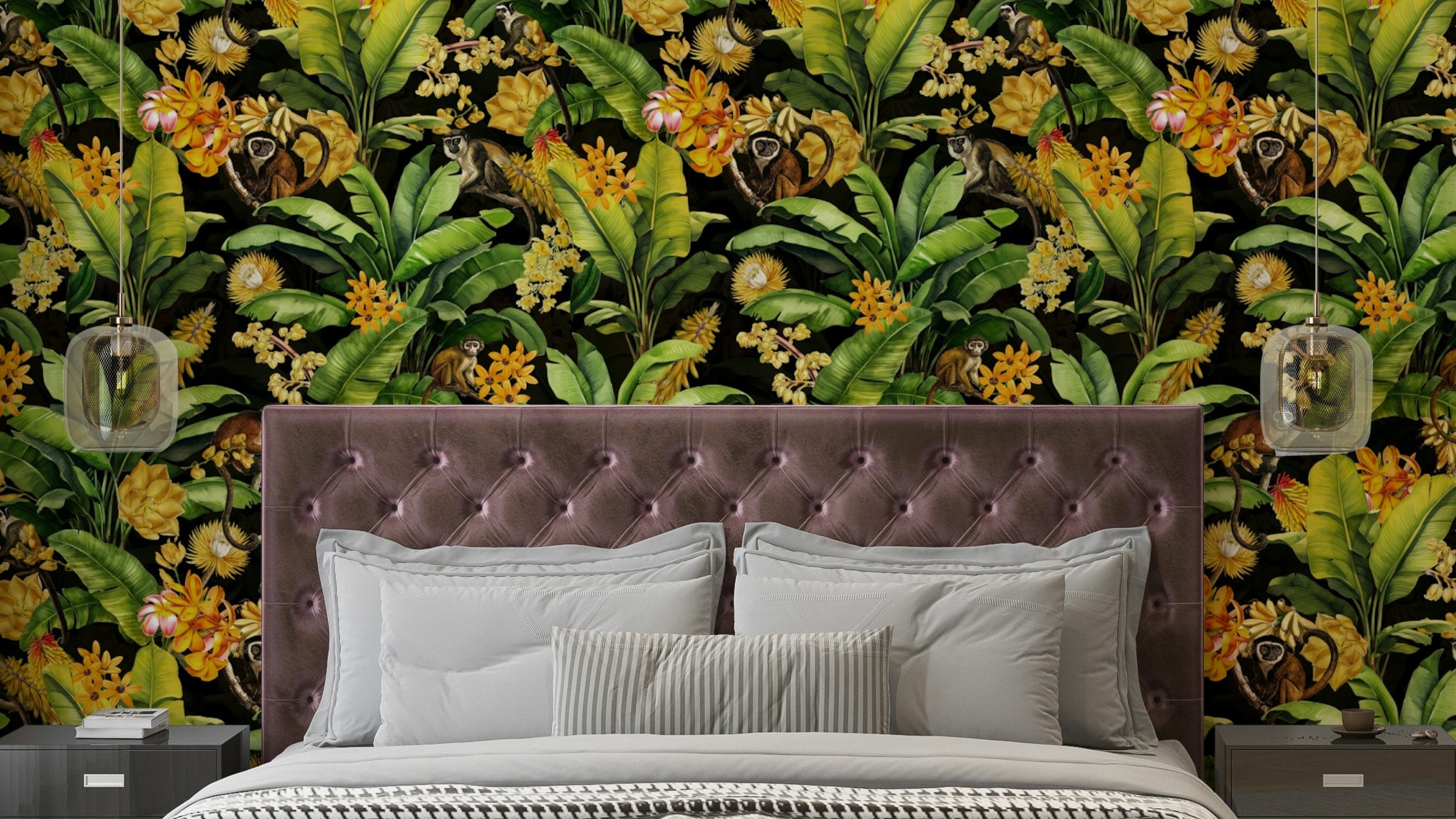 Midnight Monkeys design with rich, bold contrast and tropical flair.