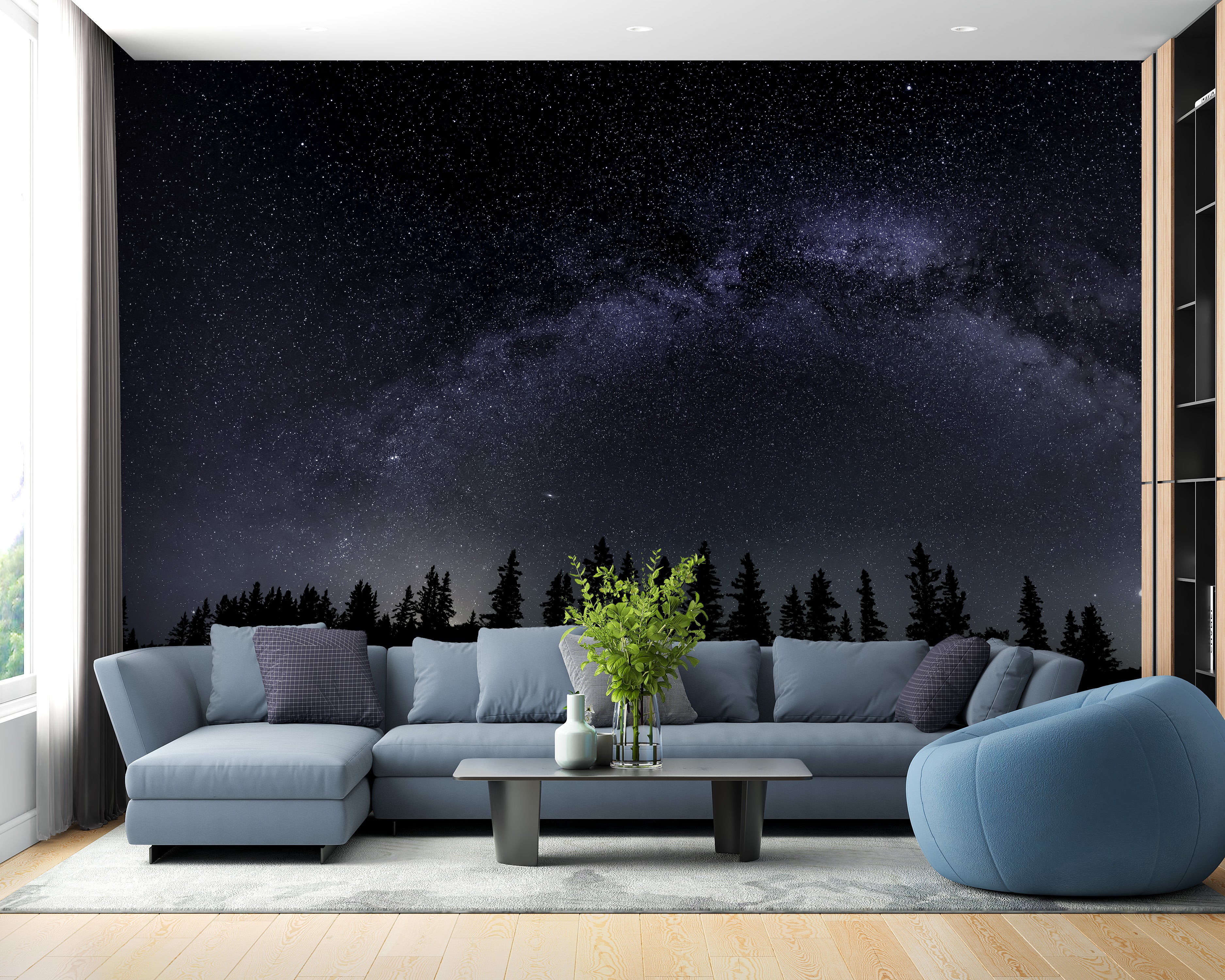 Gaze into the cosmos with our milky way starry night wallpaper mural. This stunning piece captures the ethereal beauty of the night sky, dotted with brilliant stars. It's a breathtaking representation of the Milky Way, perfect for adding a touch of celestial charm to any room.