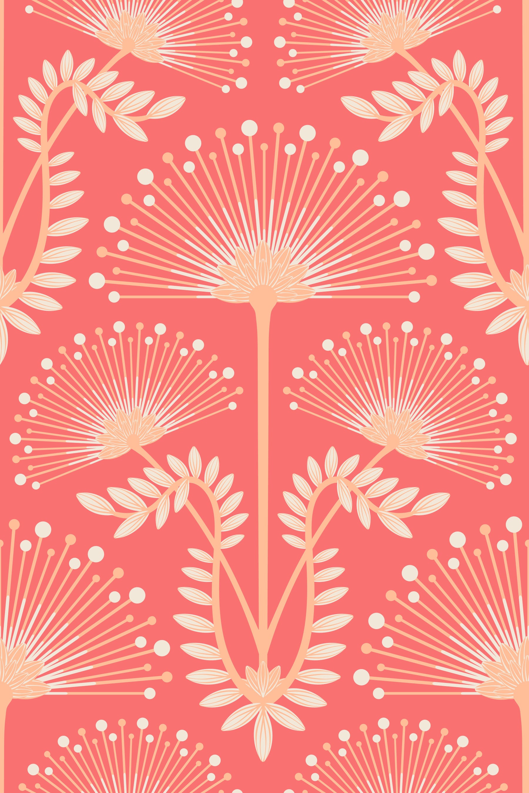 Mimosa Art Deco Floral Botanical Damask Pastel Peach Fuzz Orange Coral Red Wallpaper⁠