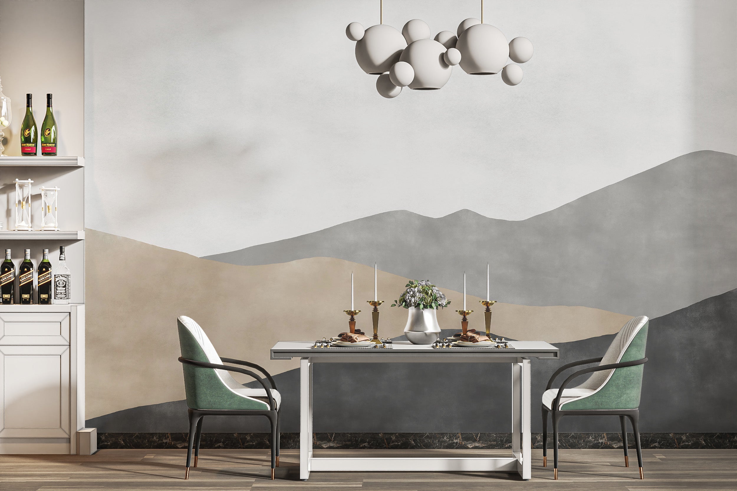Update your space with the minimalist earthy tones mountain mural, an ideal combination of abstract landscape wallcovering with a neutral mural. With its layered watercolor mountain wall art in light beige, slate grey, and dark black, this design provides a sense of peace and sophistication to any interior. It is excellent for Scandinavian-style wall decorations and adds a relaxing mountain vista to your living room or office. Made from premium materials, this contemporary lifestyle wall art provides installation simplicity and enduring sophistication. [Color abstract wallpaper] Platform raised walls with this desaturated color abstract wallpaper, created to bring a sense of serenity to the wall. At the same time, it provides an unobtrusive and complementary design for any interior scheme. Upgrade your walls today!