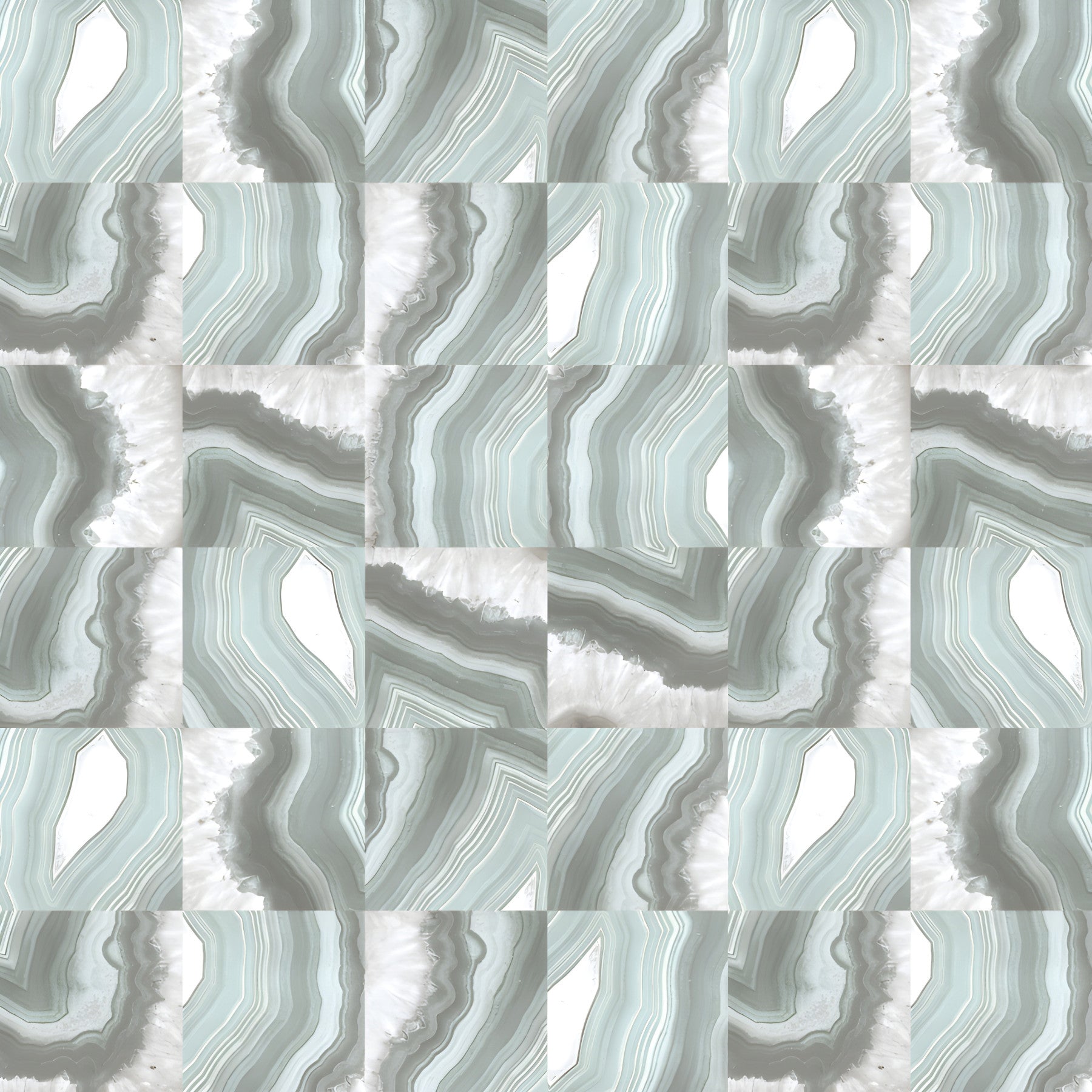 Marble-inspired wallpaper with soft mint hues and elegant agate-inspired swirls.