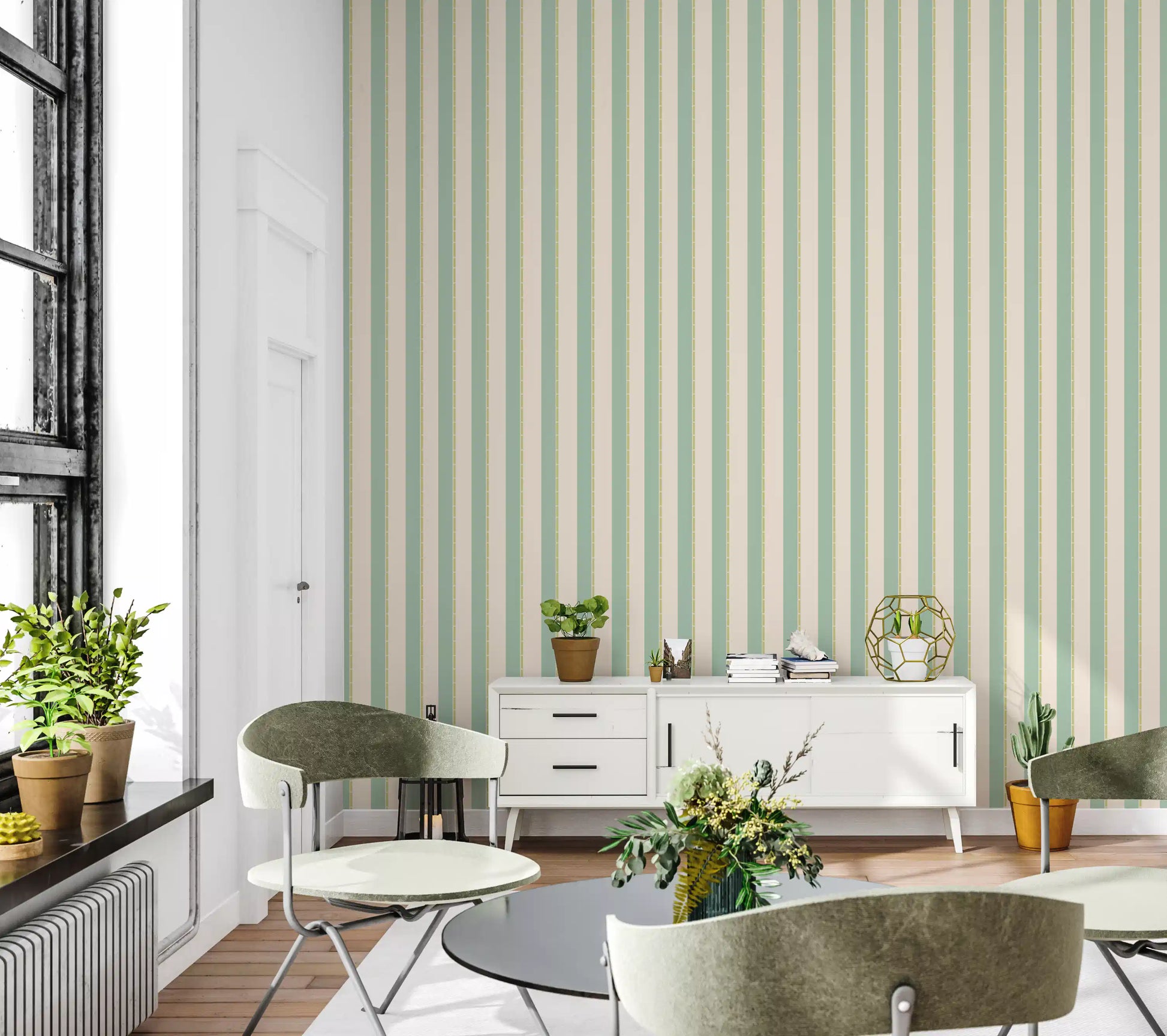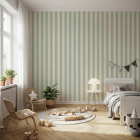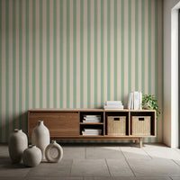Transform your interior with this refreshing vertical stripe wallpaper for walls. The soft mint and beige color palette creates a calm, airy atmosphere in any room. Delicate beige accents complement the mint green stripes, offering a subtle, stylish design. This wallpaper works beautifully in bedrooms, living rooms, or hallways, adding a touch of elegance and visual height. The straightforward pattern makes it easy to install, ensuring a smooth and sophisticated finish. Embrace this timeless design to brighten up your space and create a welcoming environment.