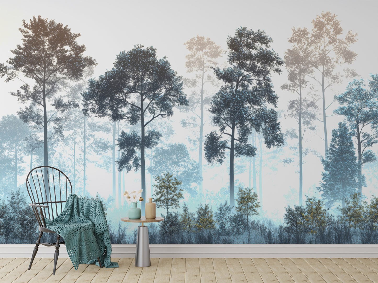 Misty Blue Forest Wall Mural
