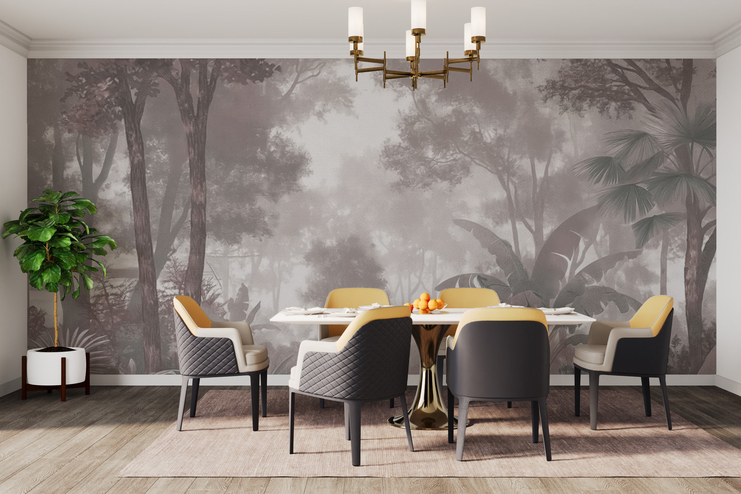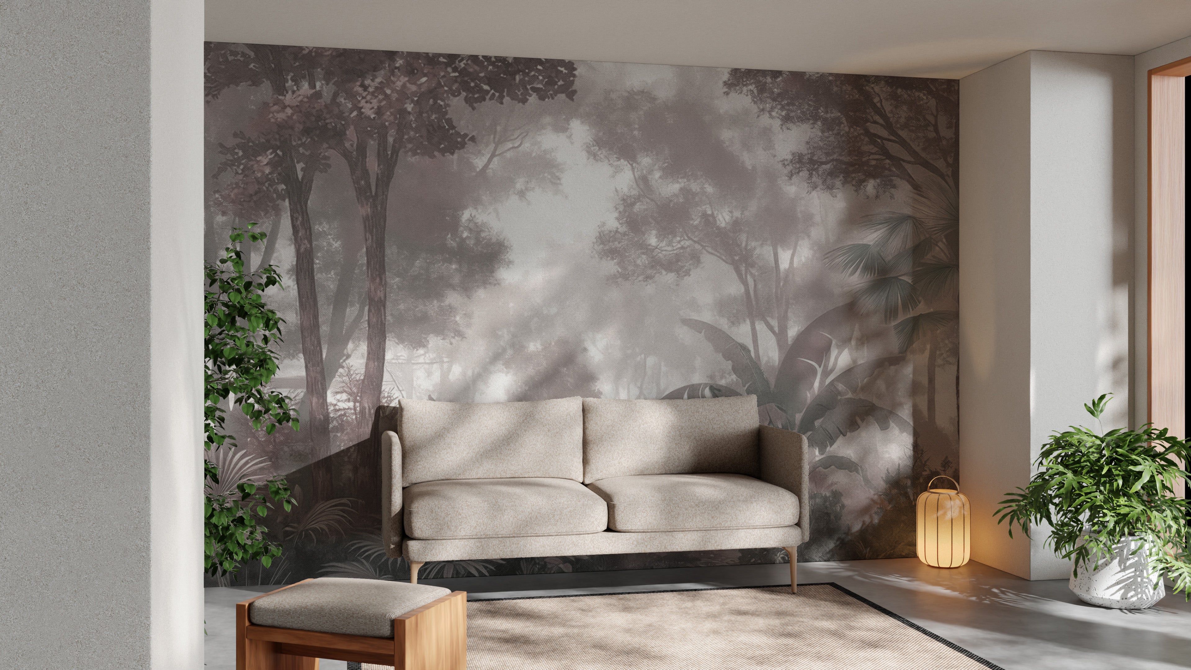 Create a serene atmosphere with the misty forest wallpaper, featuring lush greenery and soft fog for a dreamy effect. The foggy jungle mural brings a natural escape indoors, blending muted tones with tropical elements. This monochrome jungle mural is designed for a timeless appeal and enhances any setting with its elegant, misty landscape. The Dreamy Nature Wallpaper adds depth with layered trees and foliage, offering a peaceful view. Crafted for sophistication, the vintage botanical wall mural complements modern and classic interiors. Experience the beauty of nature with this Tropical Forest Wall Art, offering a breathtaking forest scene in a refined style.