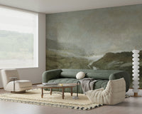 Transform your space with this scenic wallpaper. The design features a valley with soft mist, depicted in shades of grey, beige, and muted green. This nature-inspired artwork brings a touch of serenity to any room. Ideal for living rooms, bedrooms, or home offices, the muted palette promotes a calming environment. The textured effect adds depth to walls. This wallpaper for walls provides an effortless way to introduce a touch of outdoor beauty indoors, creating a stylish and inviting interior that complements various furniture styles.