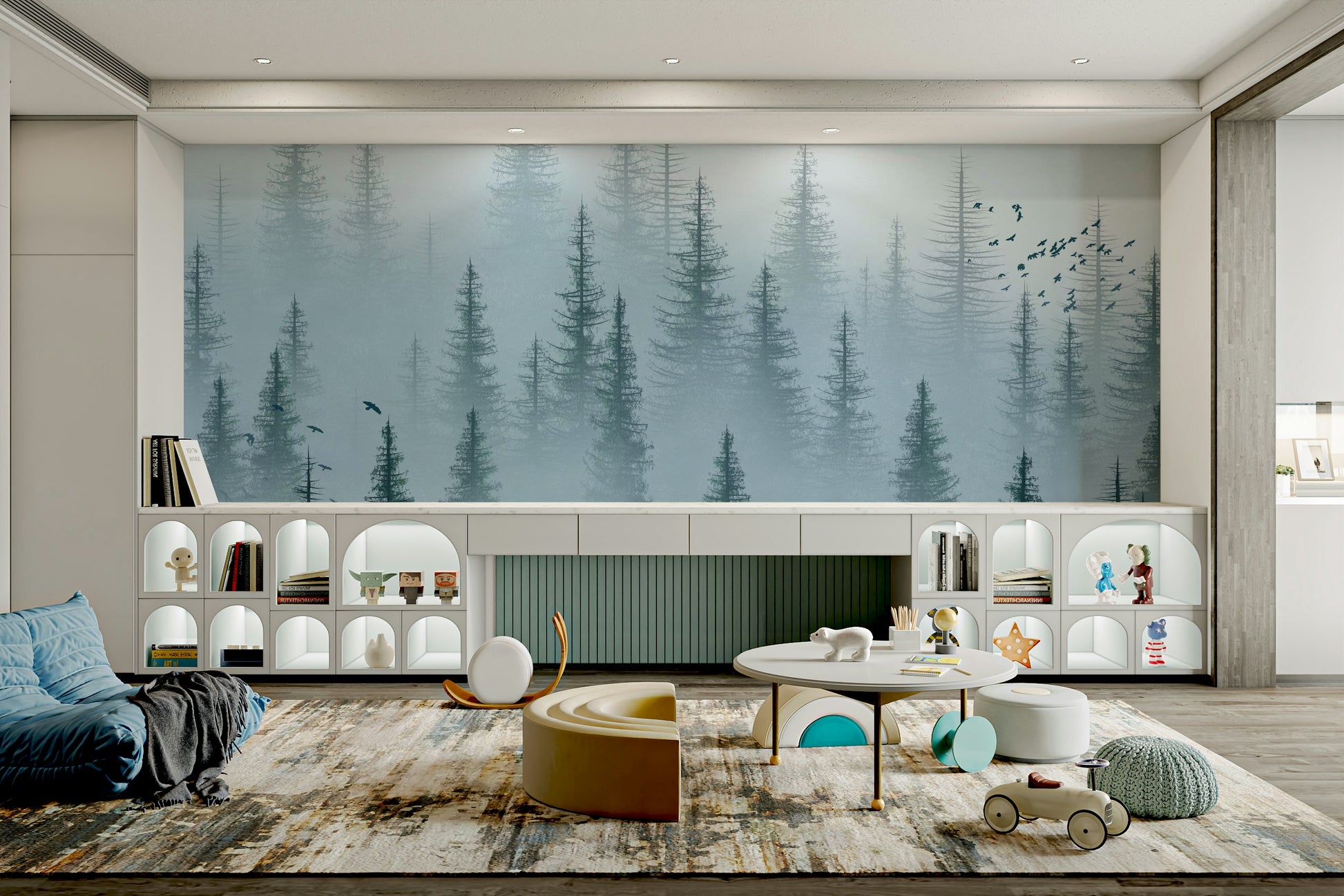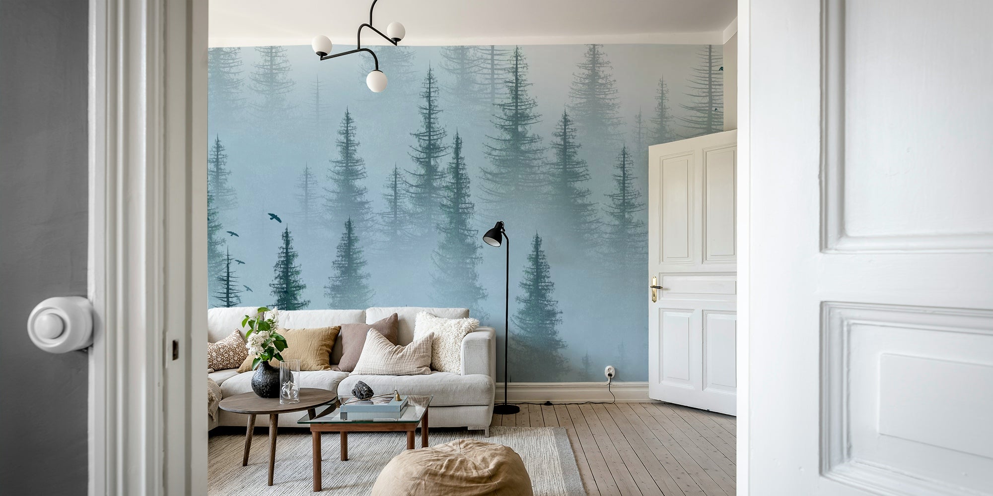 Transform the interior of your home into a tranquil escape with this Misty Woods Wallpaper. It depicts thick fog lazily hovering over tree trunks to capture the quiet beauty of forests. It also has pale and subtle colors which enhance tranquility in any space - be it a bedroom, living room, sunroom or even reading nook. There are all sorts of patterns available like walls covered in deep green leaves or stripes like those of the sea, but it is the foggy woods that so many fall in love with. This piece of art is perfect for forest lovers as it enhances the ambience and energy in your home. Experience the calmnes offered by forest mist and create an oasis of relaxation.
