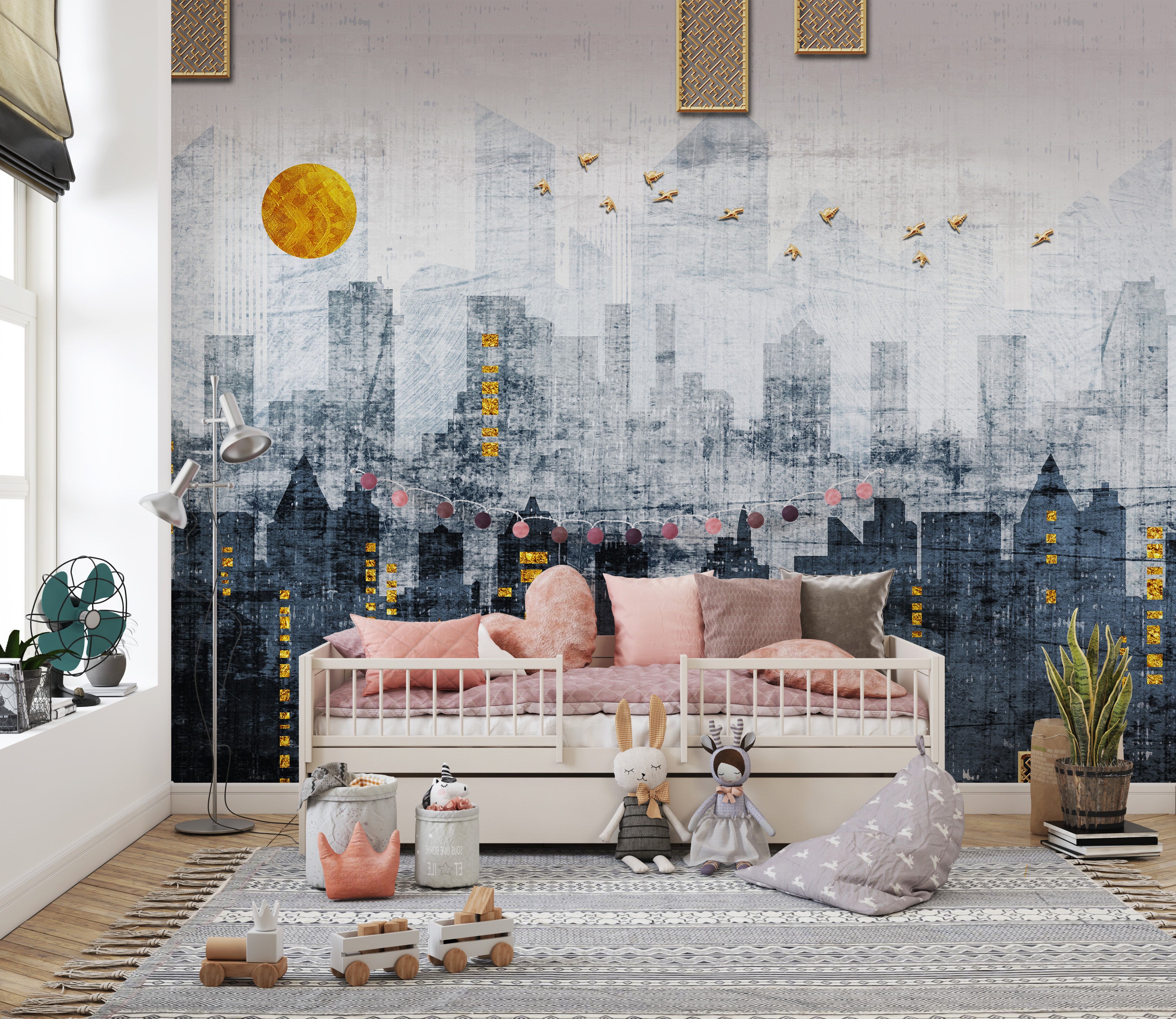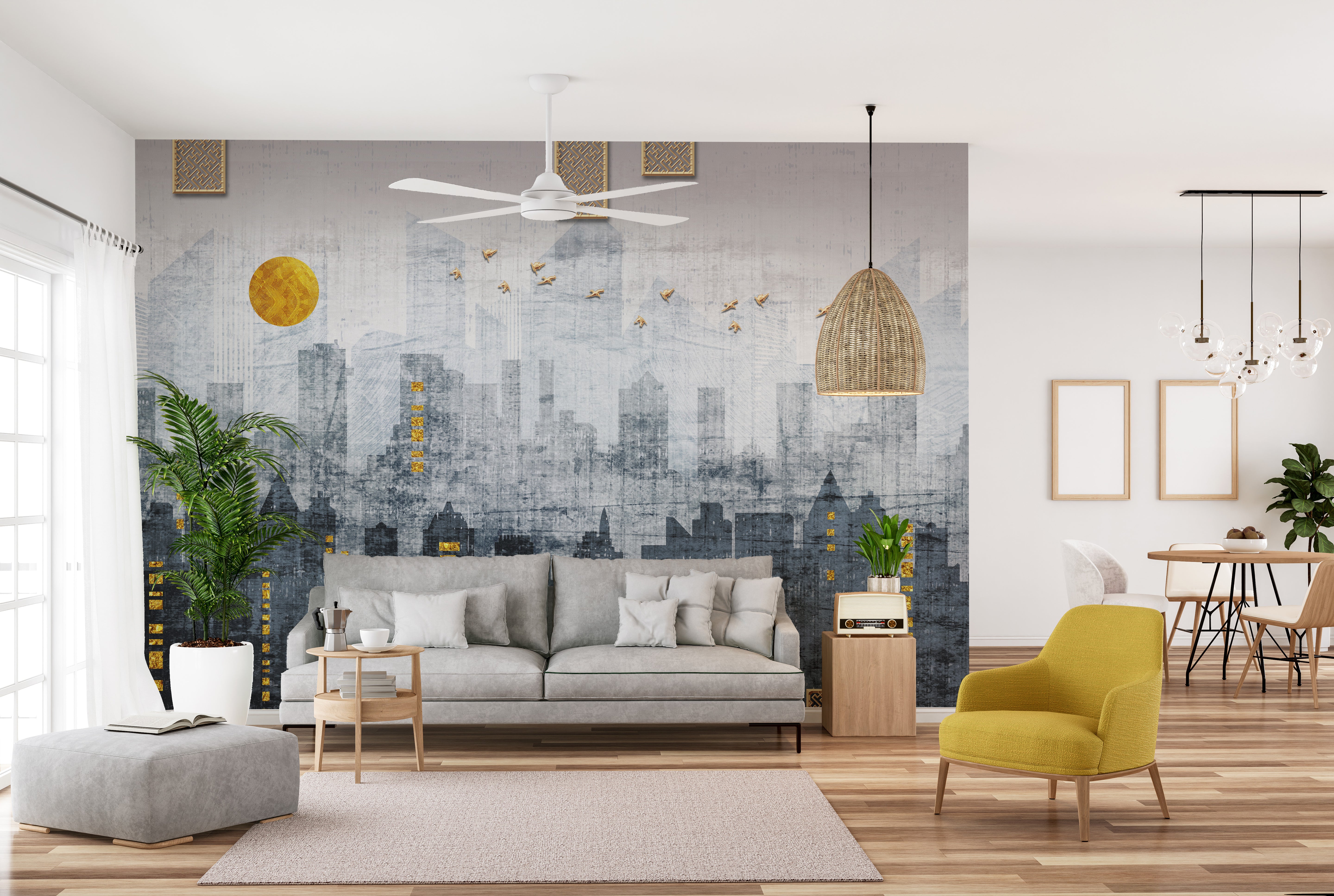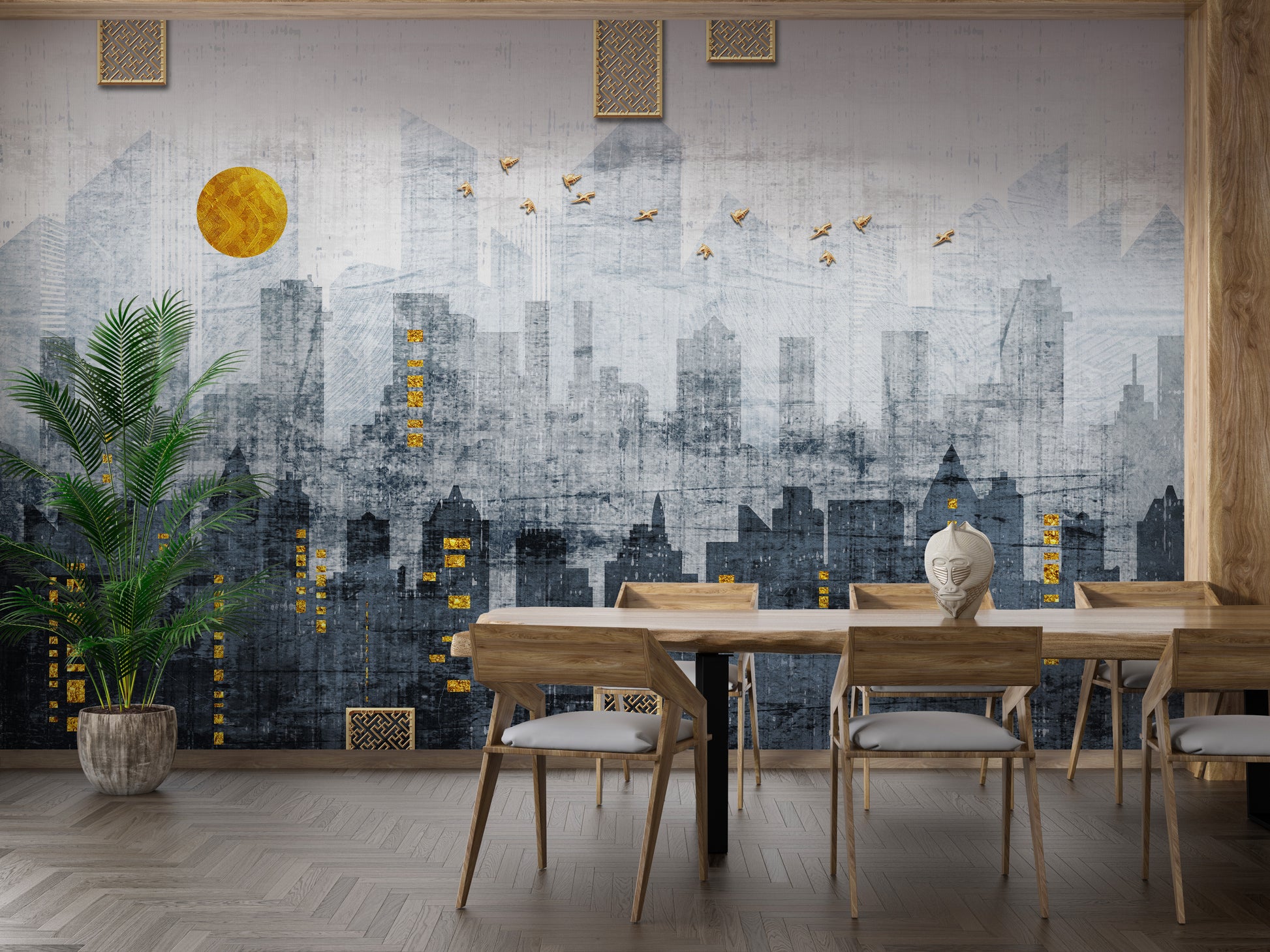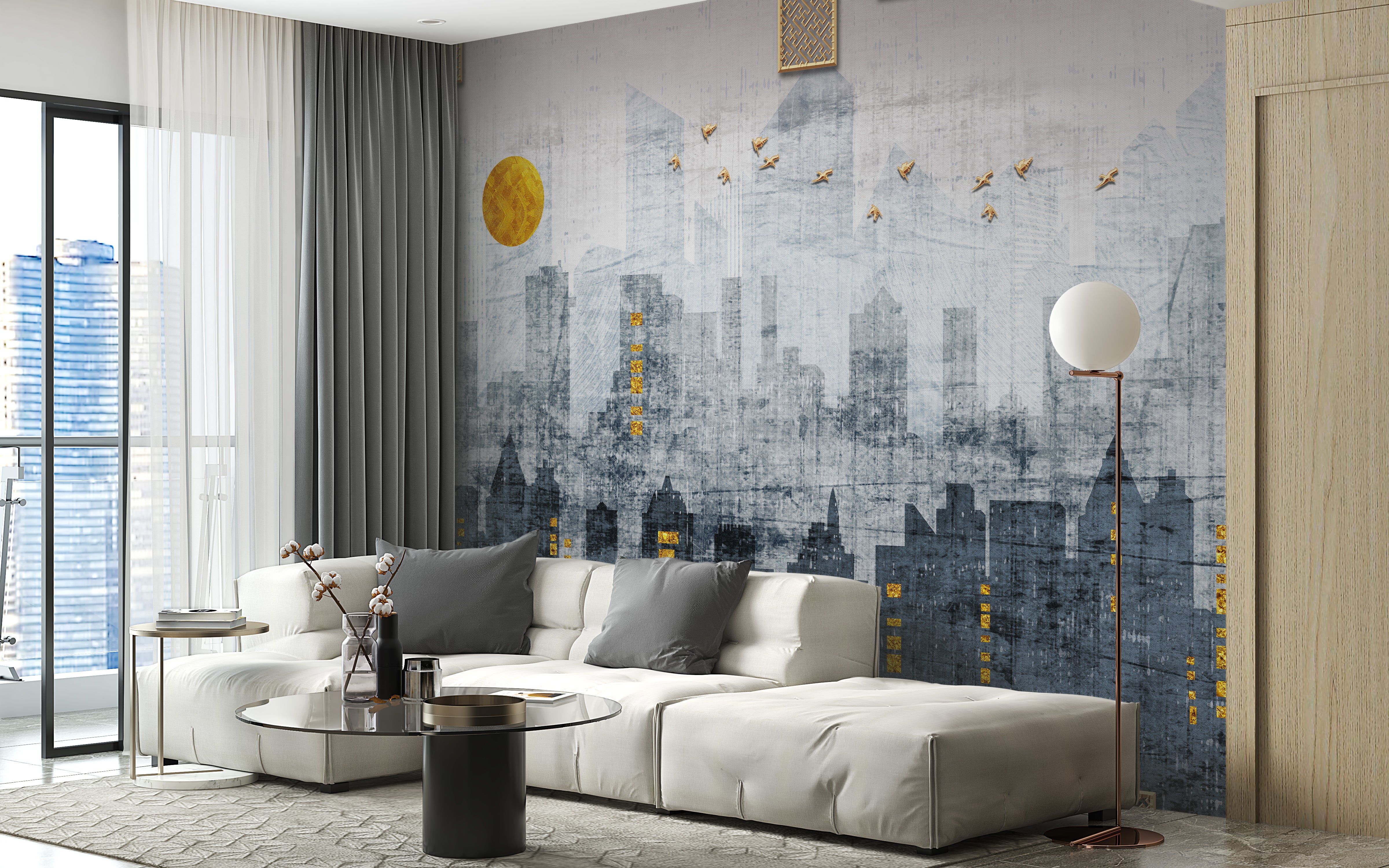 Modern cityscape mural