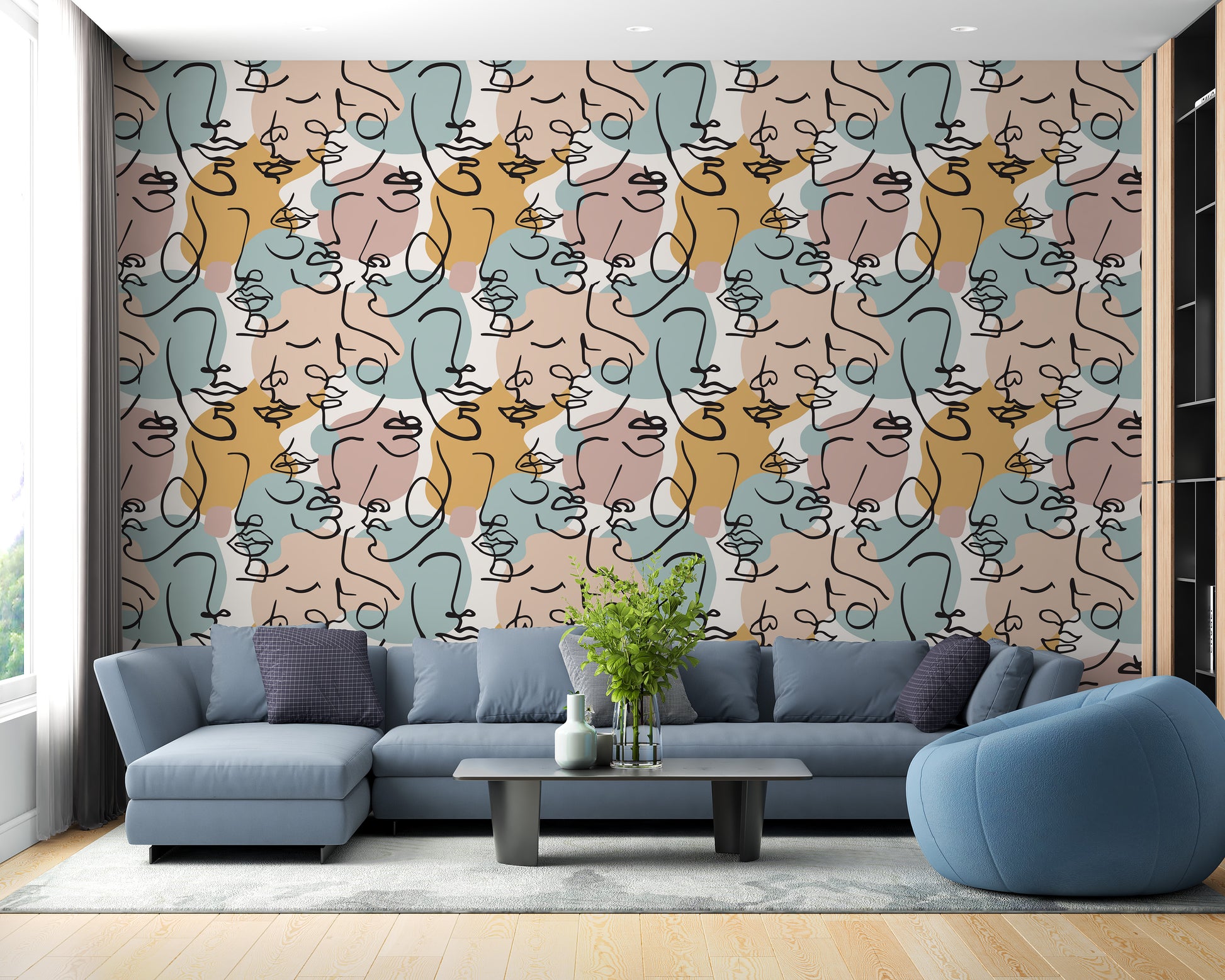 Unveil the essence of contemporary elegance with our modern human face line art wallpaper. This striking design merges the simplicity of line art with the profound complexity of human expressions, creating a captivating backdrop for any room. Crafted for those who appreciate art that speaks without saying a word, this wallpaper transforms your space into a gallery of modern sophistication. Its minimalist aesthetic highlights every curve and line, offering a unique blend of style and personality. Perfect for living rooms, bedrooms, or offices, this wallpaper invites viewers to pause and ponder, making every glance an encounter with beauty. Don't just decorate; make a bold statement. Elevate your interiors with a piece that stands at the intersection of art and life. Shop now and bring the power of modern art into your home.