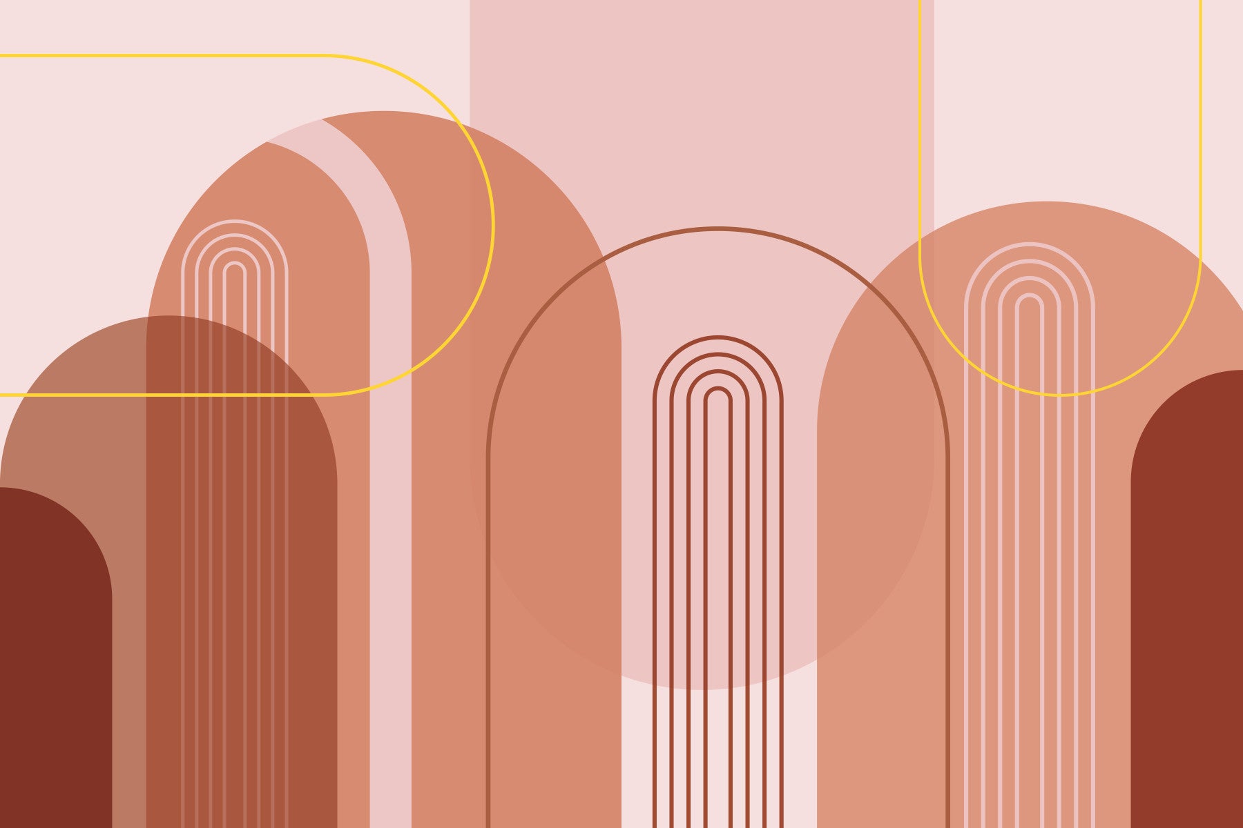 This wallpaper captures the essence of mid-century modern design with its clean lines and earthy color palette. The overlapping arches in varying shades of terracotta and blush pink create a sense of depth and visual rhythm. Subtle gold lines add a touch of luxury and sophistication. This wallpaper is perfect for creating a stylish and calming atmosphere in any room, from living rooms and bedrooms to hallways and even offices. Its understated elegance blends seamlessly with both modern and traditional decor styles, adding a touch of timeless charm to your interior space. The muted colors and clean design ensure it remains a visually pleasing focal point without being overpowering.