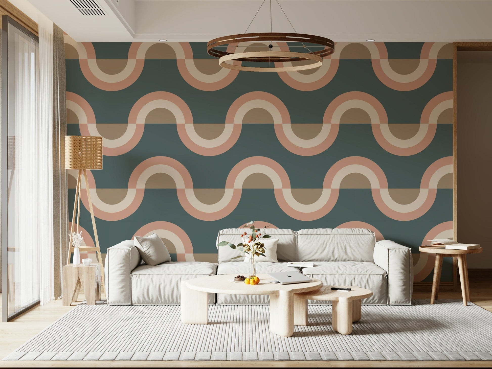 Incorporate a touch of vintage charm into your home with our Modern Retro Arcs Decor wallpaper. This design blends pastel hues and bold curves to create a soothing yet sophisticated backdrop for any room. Ideal for those seeking a mid-century vibe with a contemporary twist. Transform your living space into a chic haven with this stylish wall covering that complements both minimalist and eclectic decor alike.