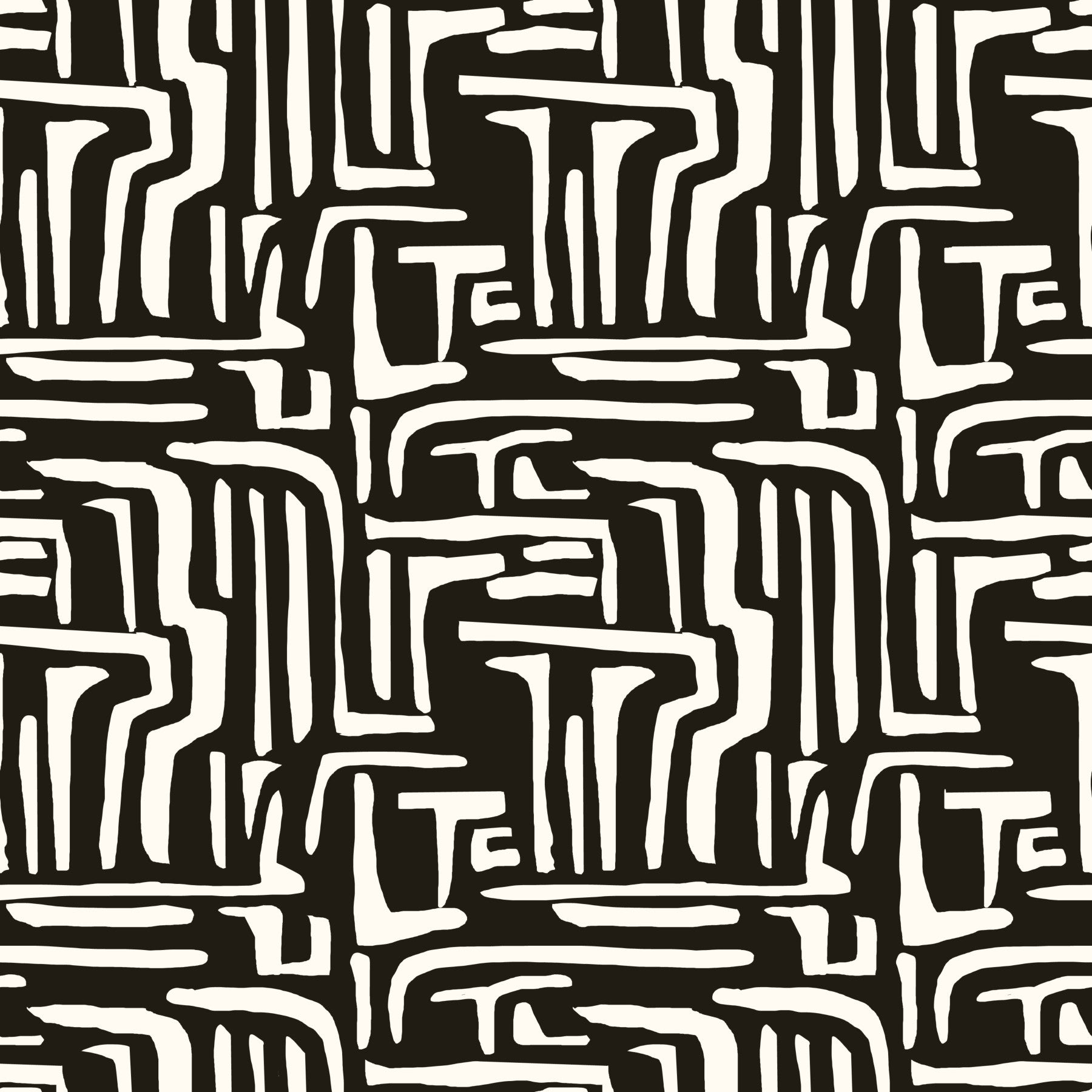 Abstract doodle style, bold pattern wallpaper, Modern Tribal Maze surface.