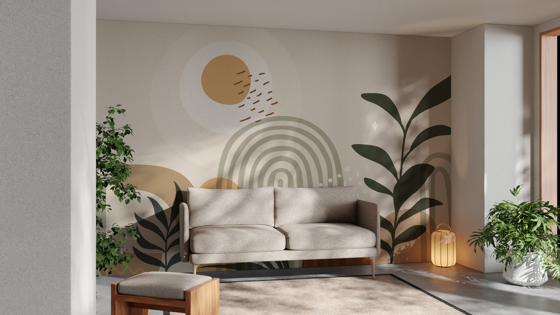 Zen-inspired wallpaper mural creating a peaceful ambiance.