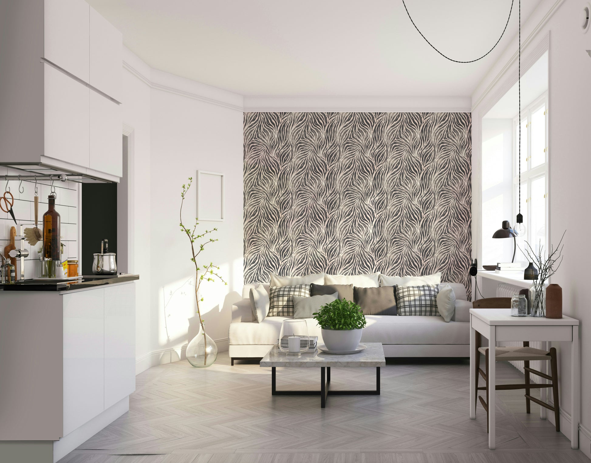 Mono Textured Boho Zebra Print Wallpaper⁠