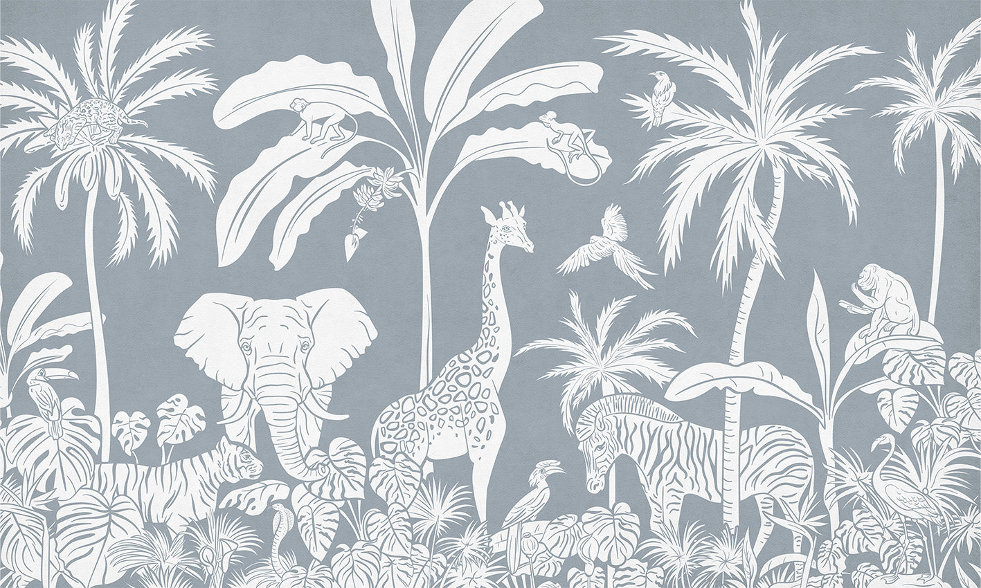 Transform your child's room with the monochrome jungle blue wall mural, an exceptional kids animal wallpaper that brings the jungle to life. This mural features a playful design with elephants, giraffes, zebras, and more, set against a soothing blue background. The intricate details of the animals and foliage create a whimsical and engaging environment, perfect for sparking your child's imagination. Made from high-quality materials, this wallpaper is durable and easy to clean, ensuring it remains vibrant and captivating for years to come. Order the Monochrome Jungle Blue Wall Mural today and let your child enjoy a wild adventure every day. Get yours now!