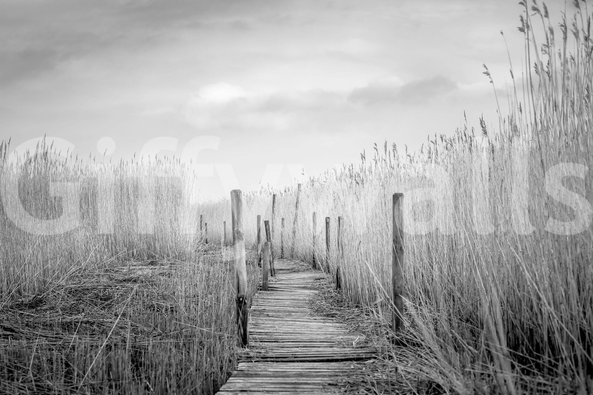 Monochrome Marsh Path Wall Mural -2487649